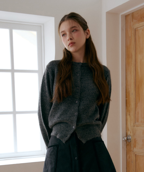 울알파카 라운드 가디건-차콜