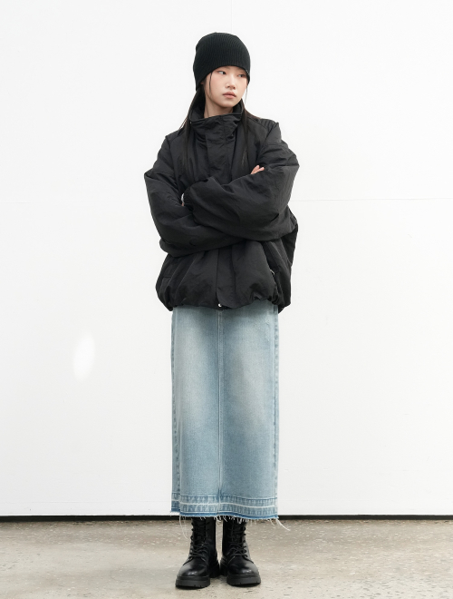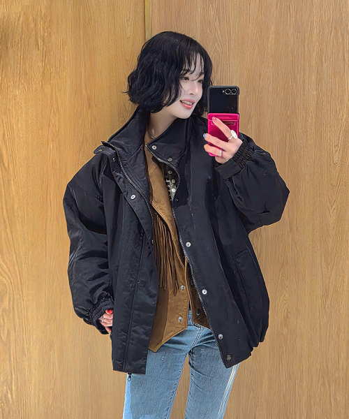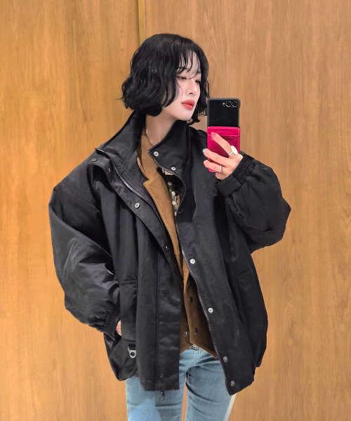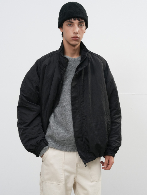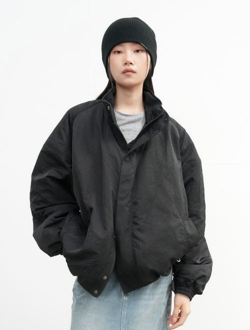 UNISEX 패디드 볼륨 블루종 봄버 점퍼 [BLACK] / SBE3U07006