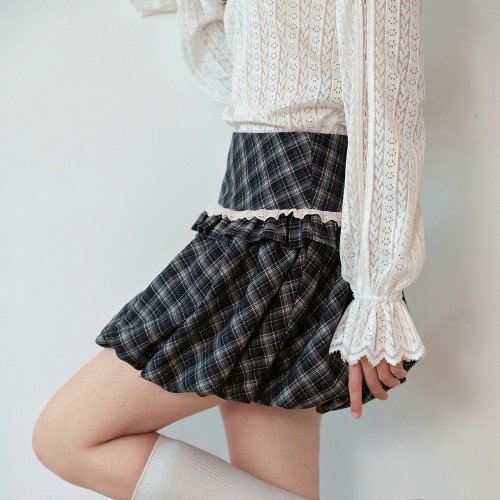 Cest_Plaid ruffle balloon skirt