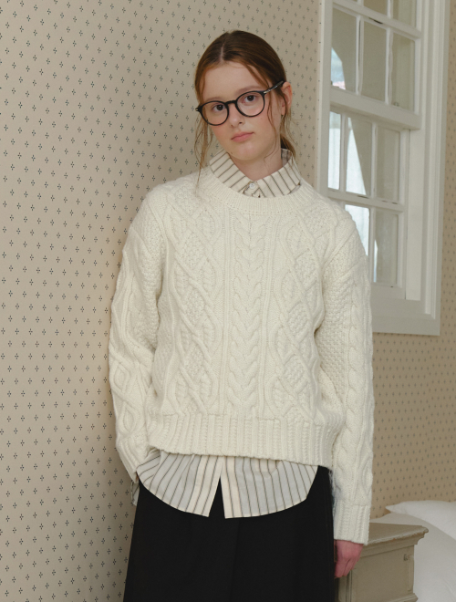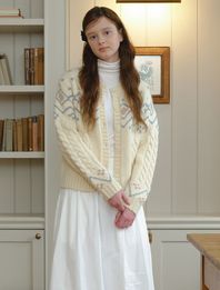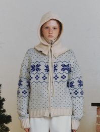 Nordic Wool Jacquard TwoWay ZipUp Knit - cream blue