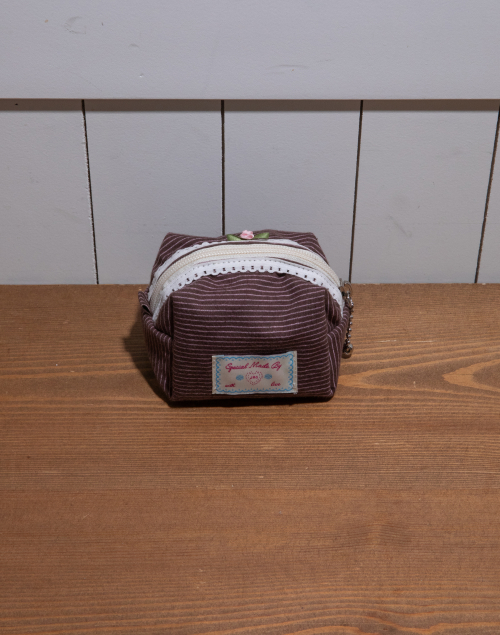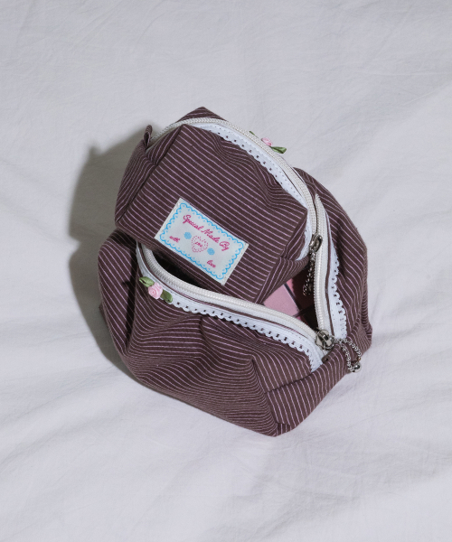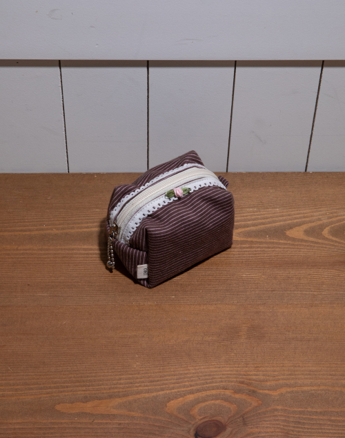 패브릭 사각 파우치 스트라이프 브라운 S