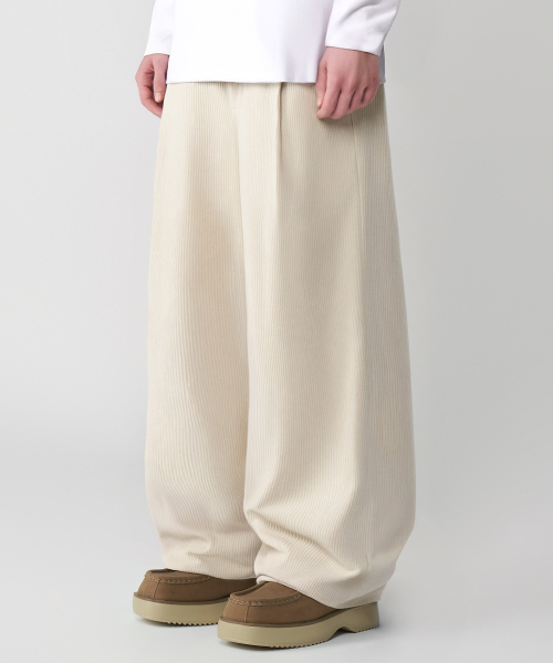 컬러풀 코듀로이 스트링 와이드 팬츠 크림