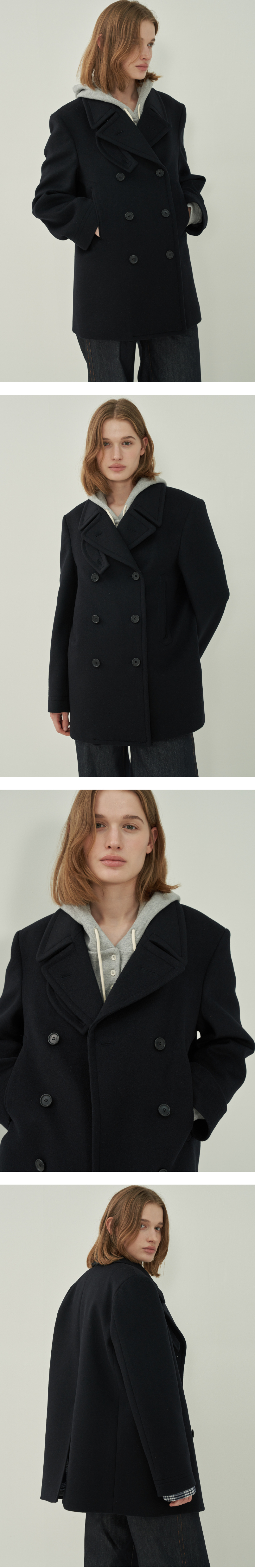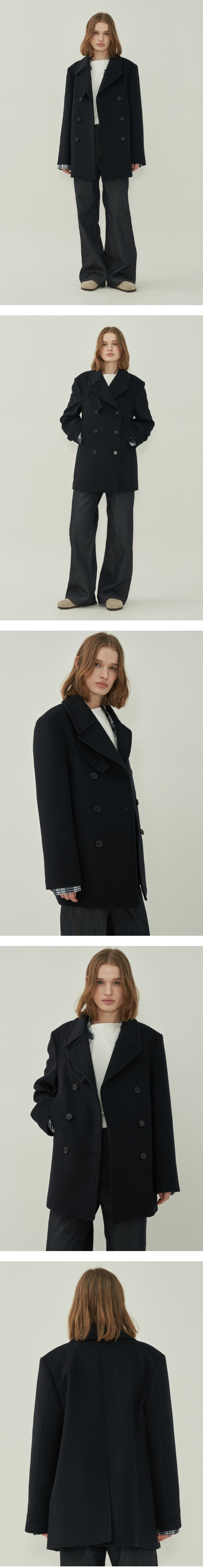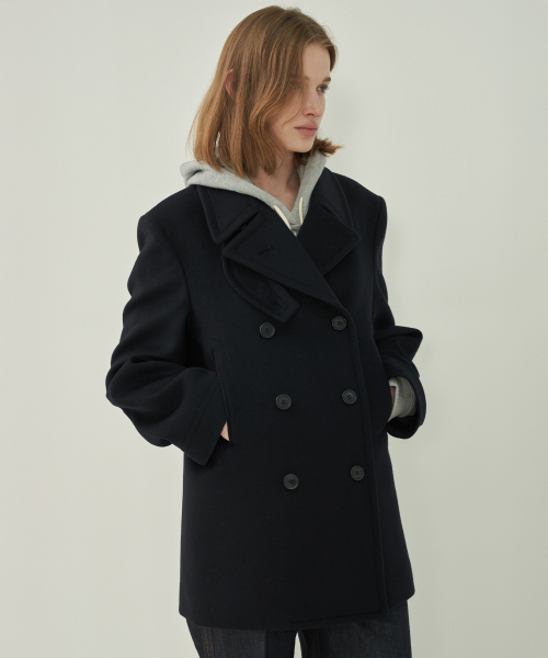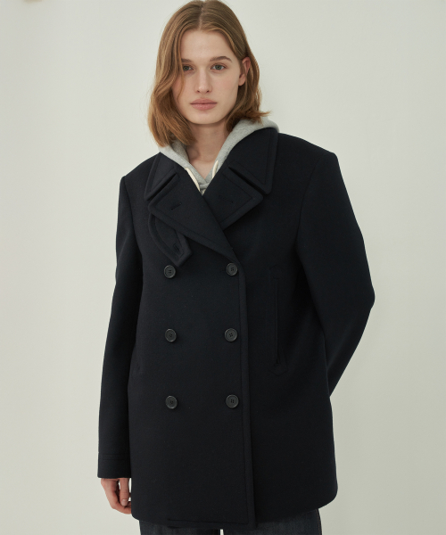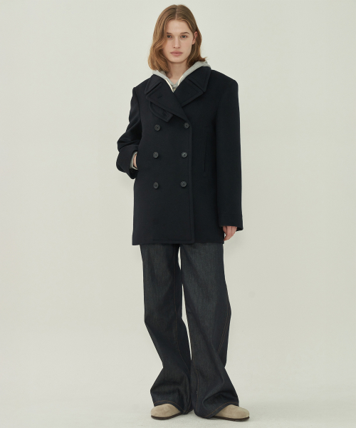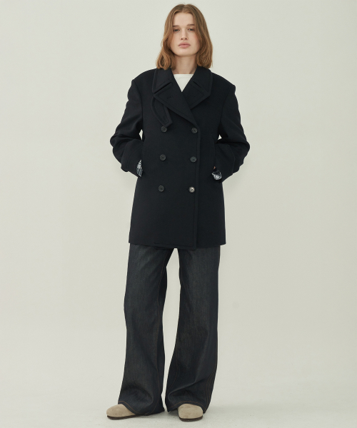 울 더블 피코트 - Black