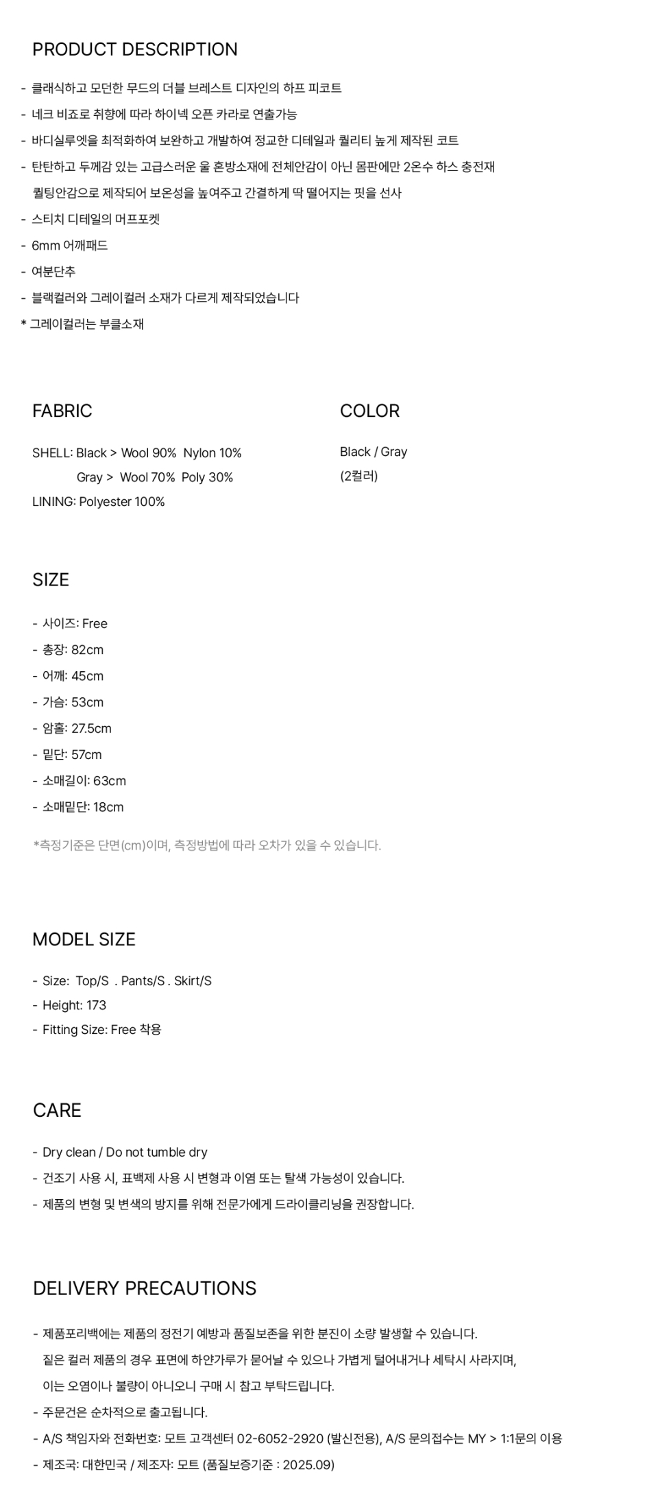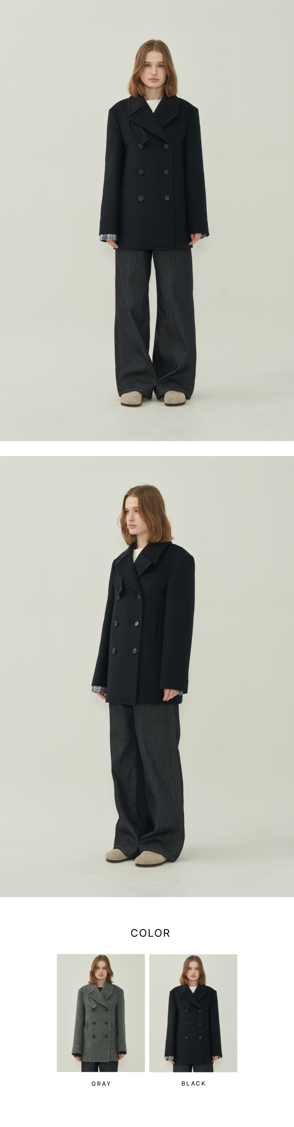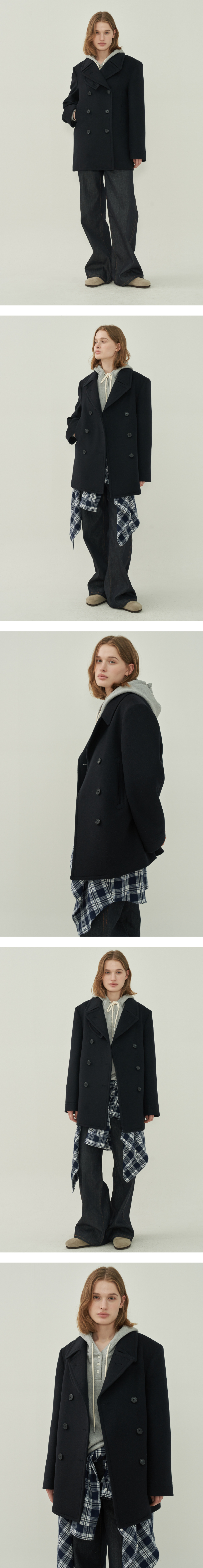 울 더블 피코트 - Black