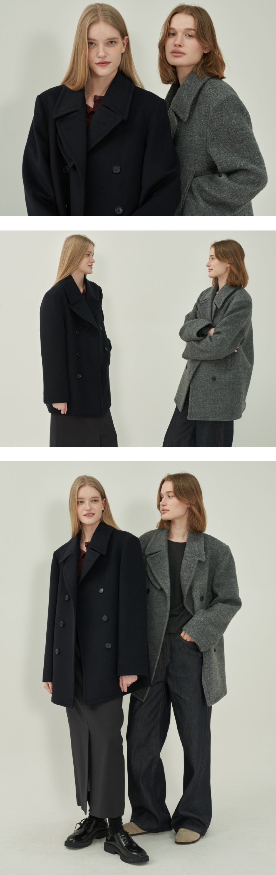 울 더블 피코트 - Gray