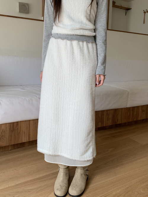 스퀘어넥 리브드 롱 슬리브 [3COLOR]