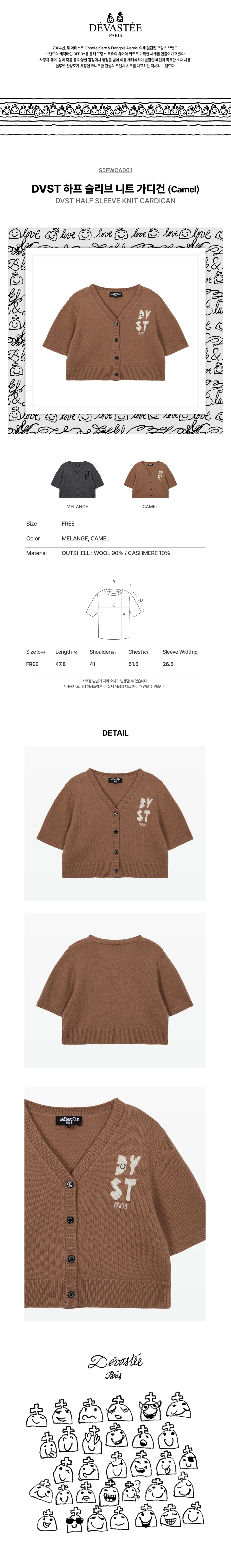DVST 하프 슬리브 니트 가디건 CAMEL (S5FWCA001)
