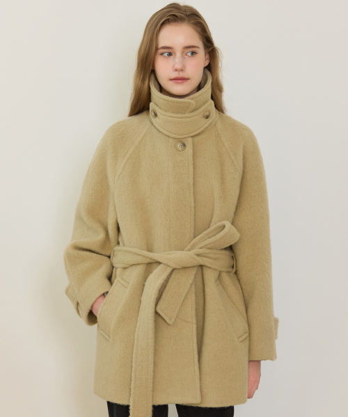 Hairy Alpaca Raglan Belted Half Coat - Beige