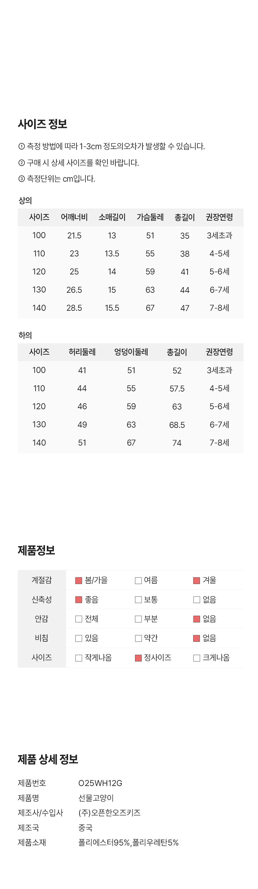 선물고양이 실내복 120 사이즈를 착용했어요.