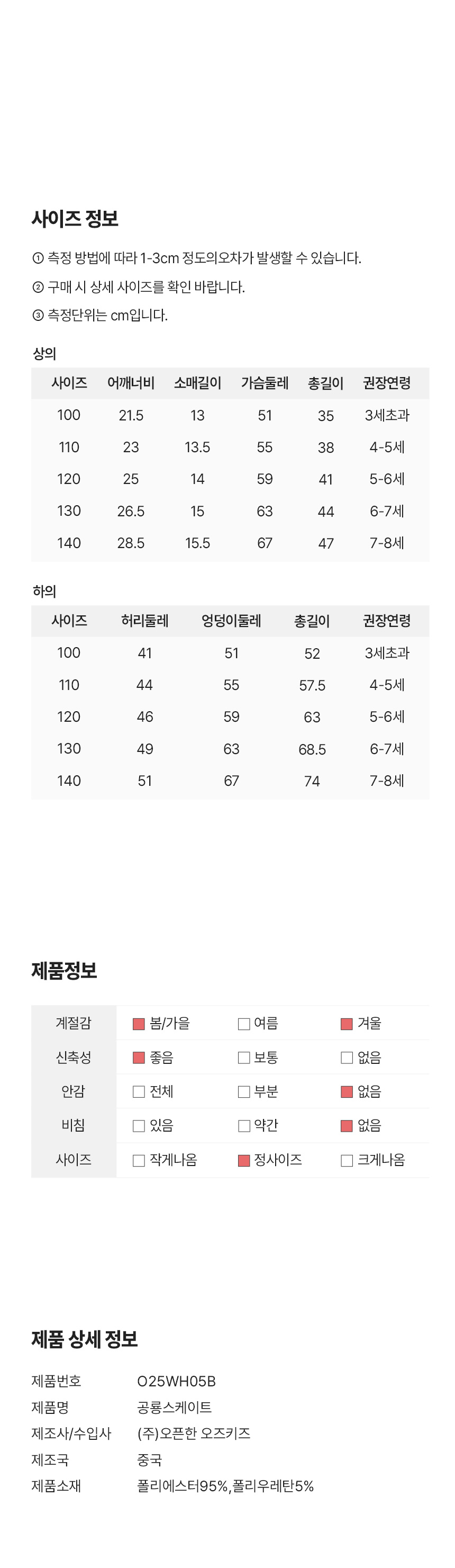 공룡스케이트 실내복 120 사이즈를 착용했어요.