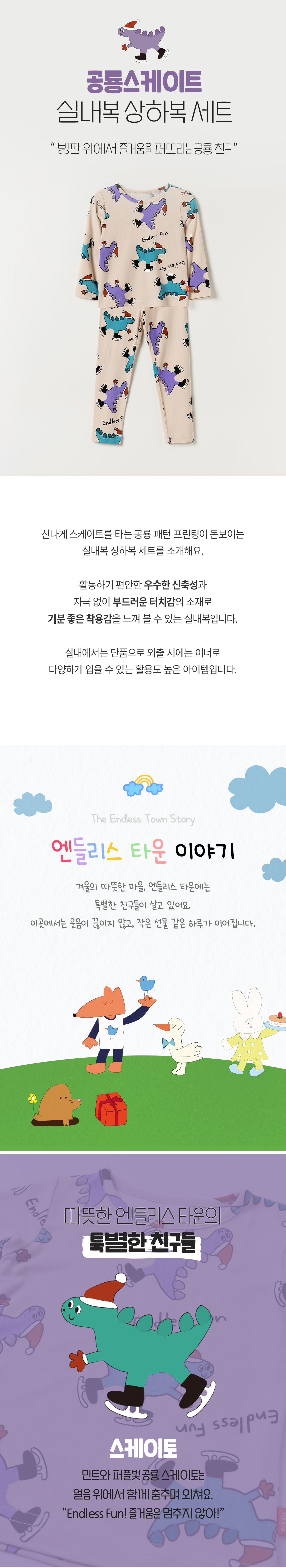 공룡스케이트 실내복 상하복 세트