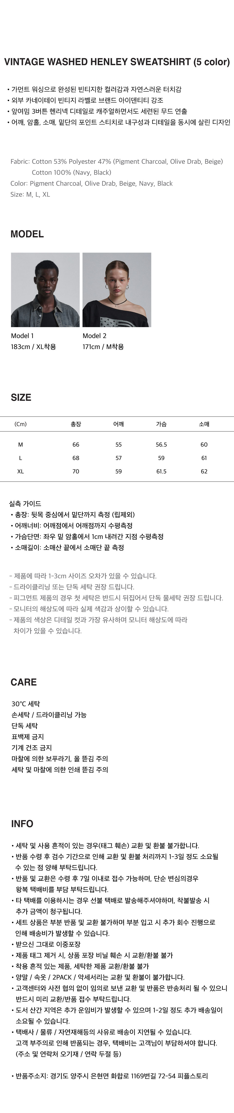 [2PACK] VINTAGE WASHED HENLEY SWEATSHIRT (5color)