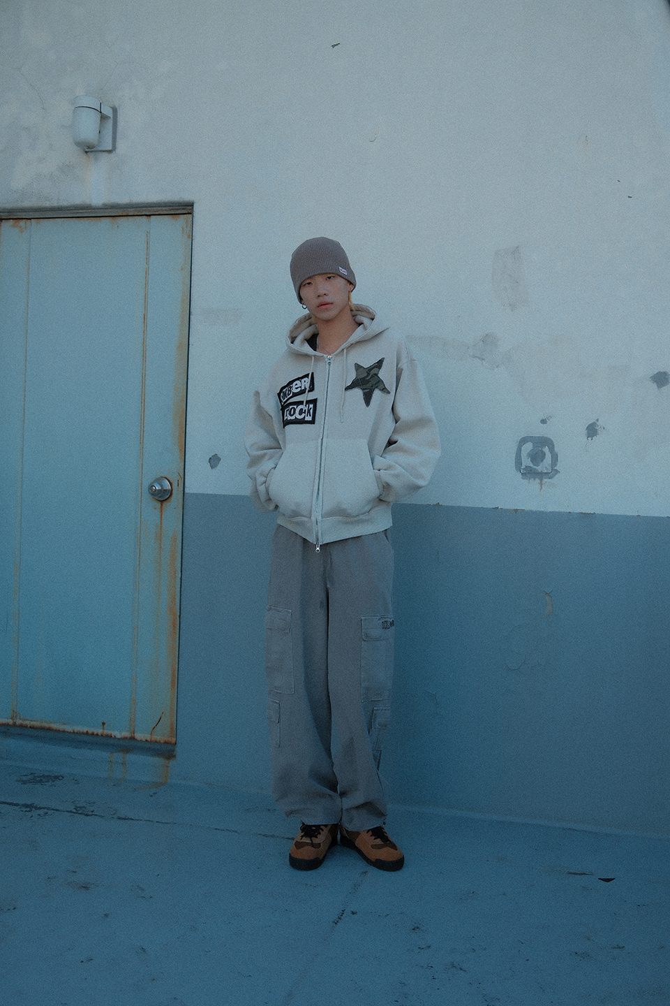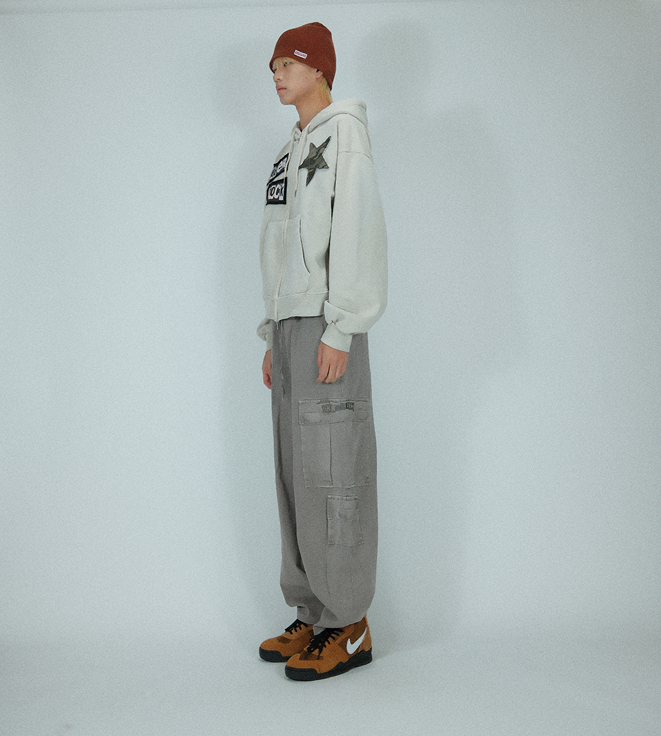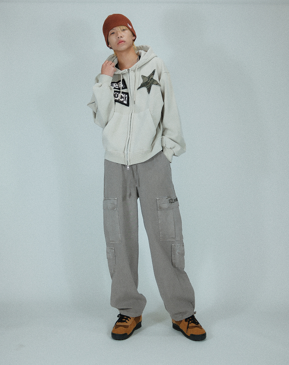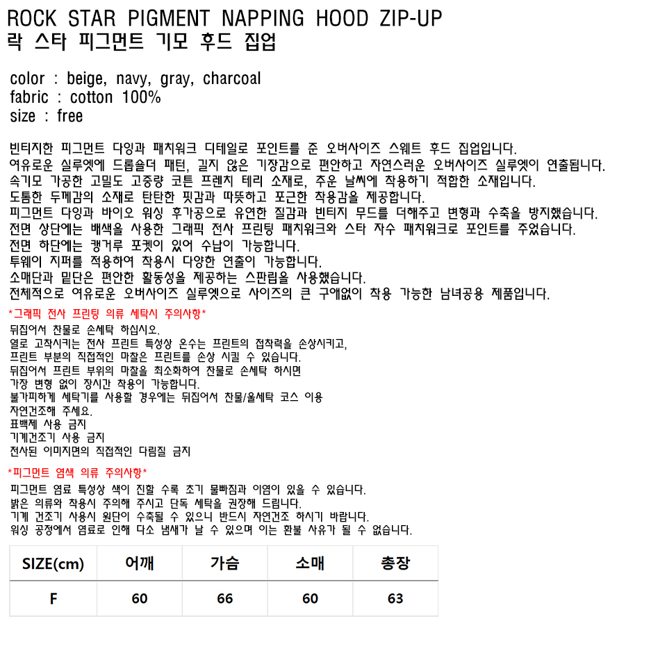 (기모)Rock Star Pigment Napping Hood Zip-up ((beige))