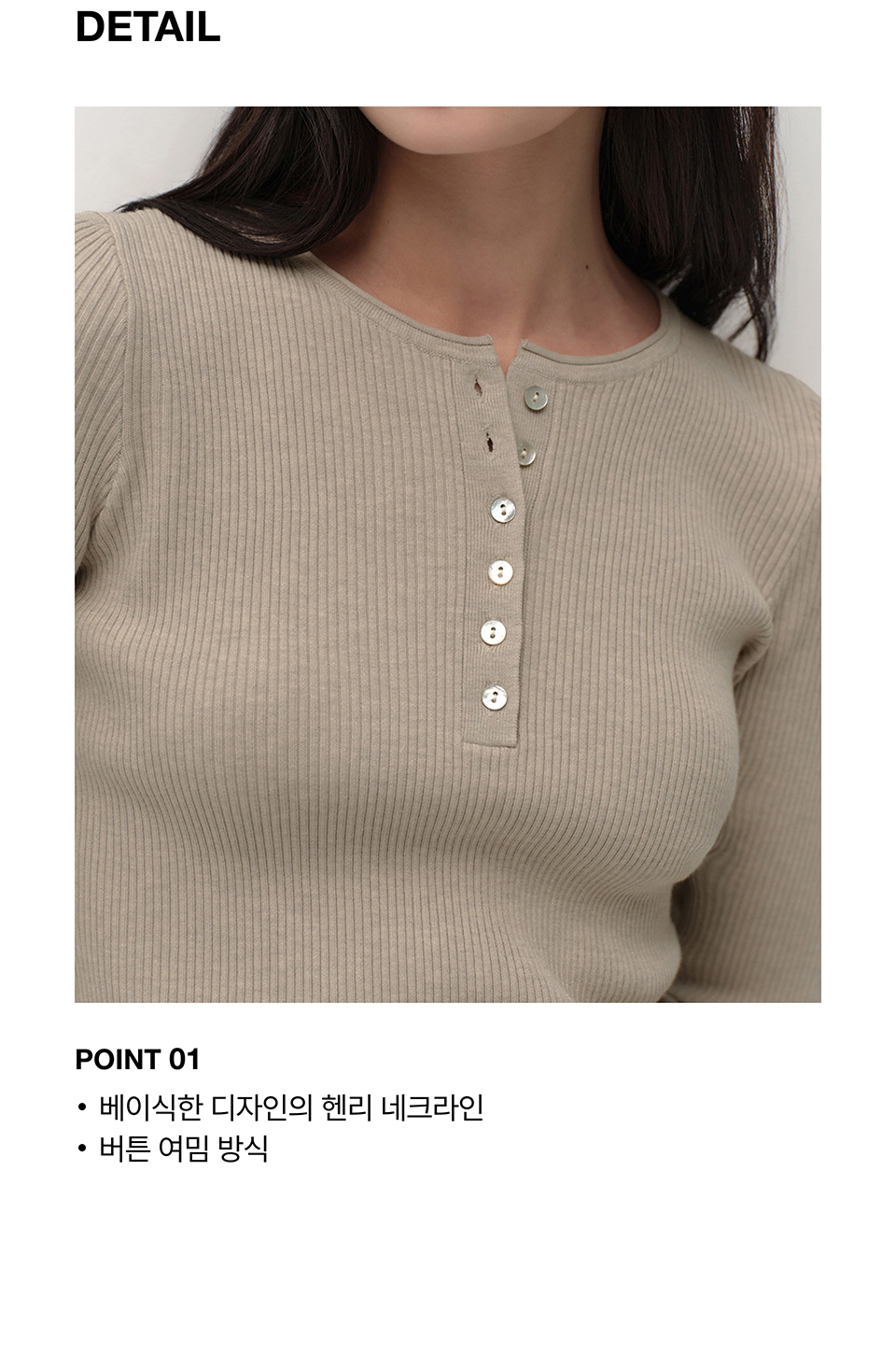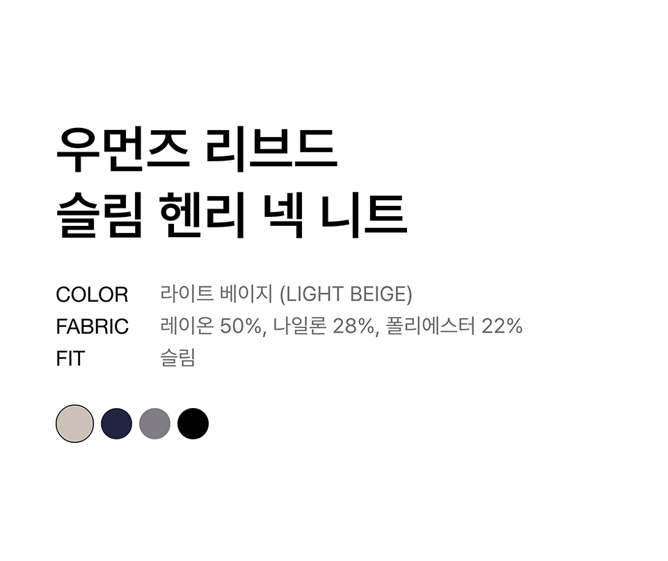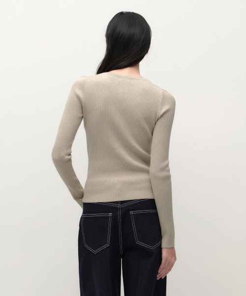 우먼즈 리브드 슬림 헨리 넥 니트 [라이트 베이지]