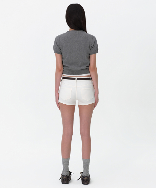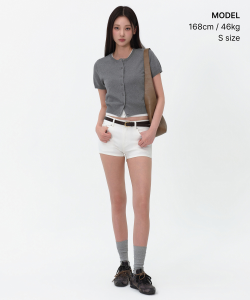 우먼즈 에센셜 라운드 넥 반소매 가디건 [아이보리]