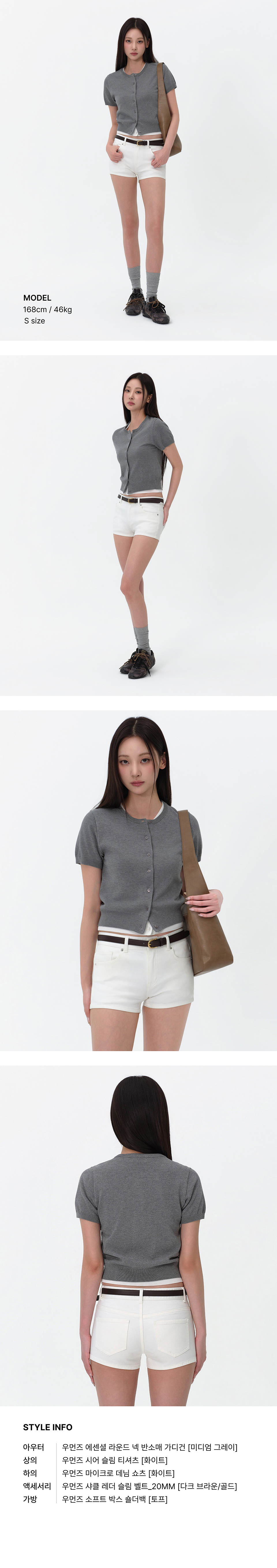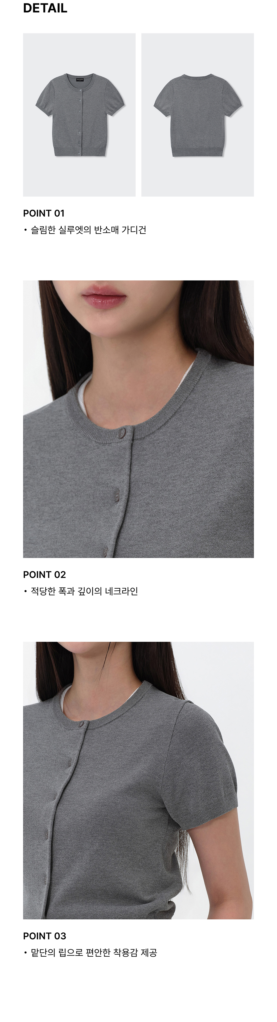 우먼즈 에센셜 라운드 넥 반소매 가디건 [미디엄 그레이]