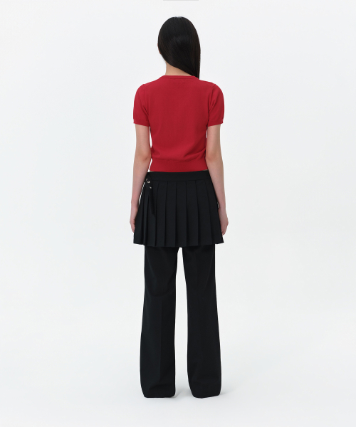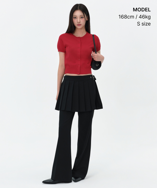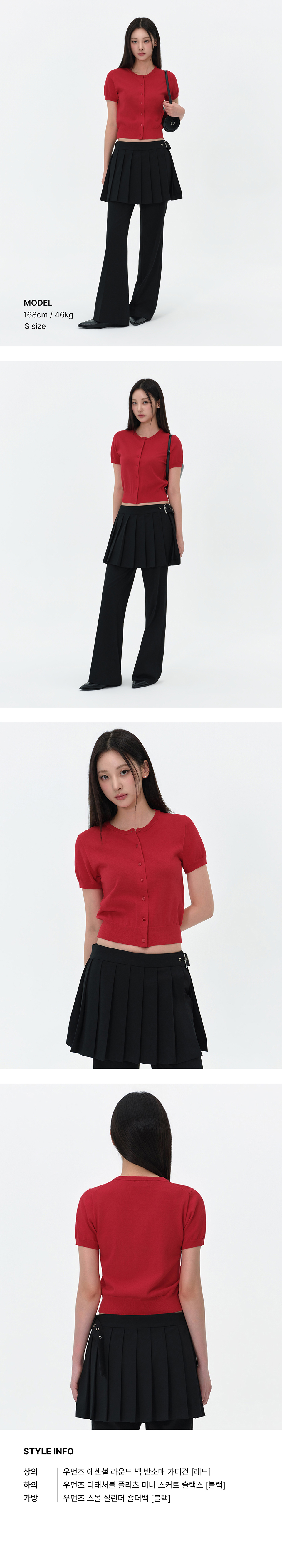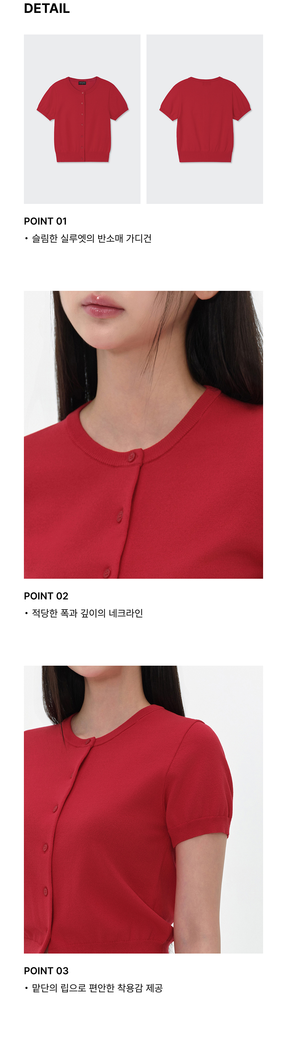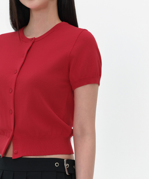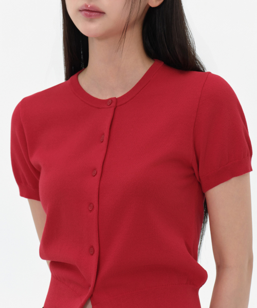 우먼즈 에센셜 라운드 넥 반소매 가디건 [레드]
