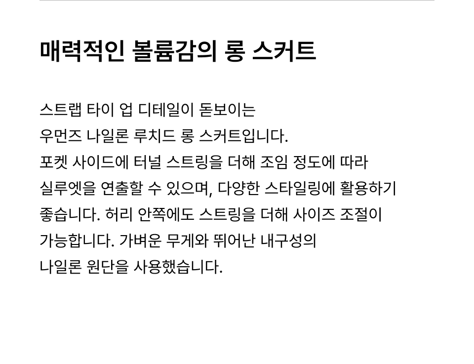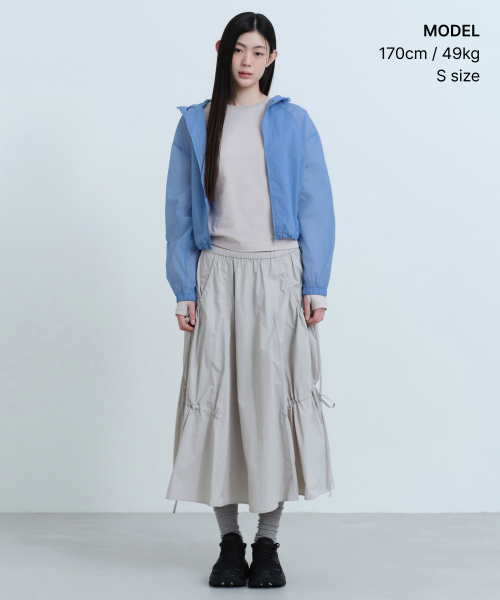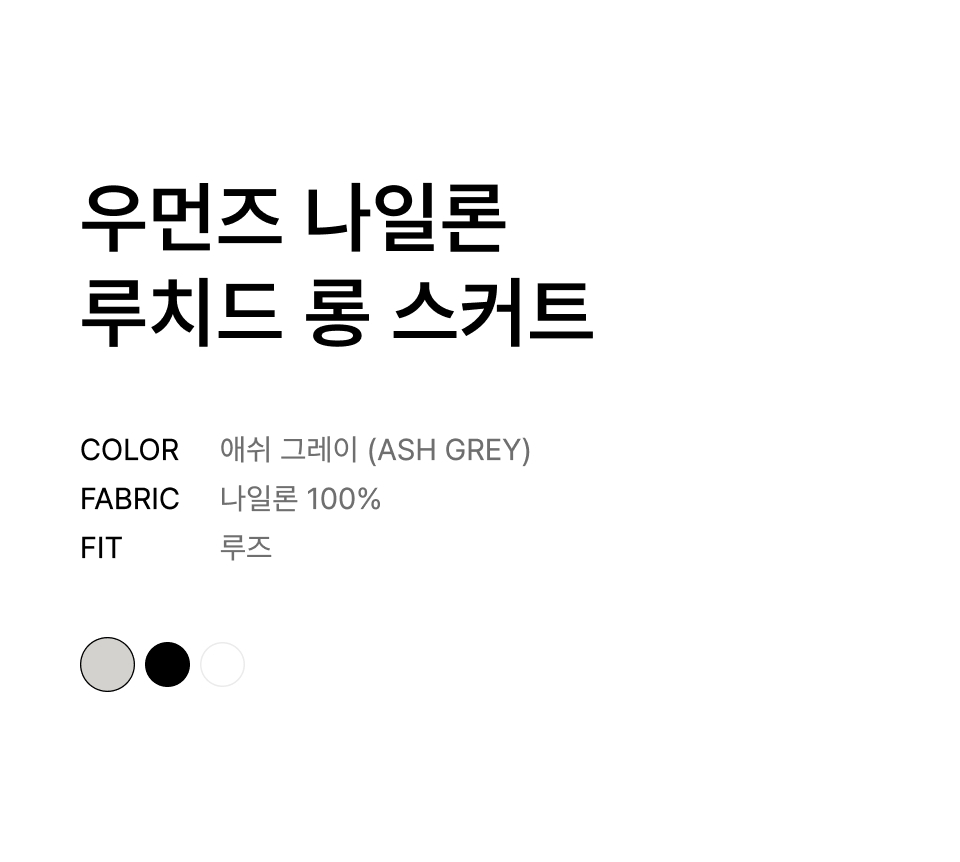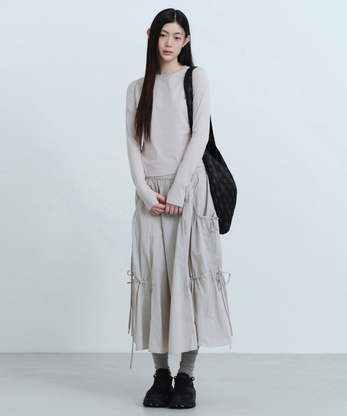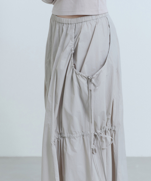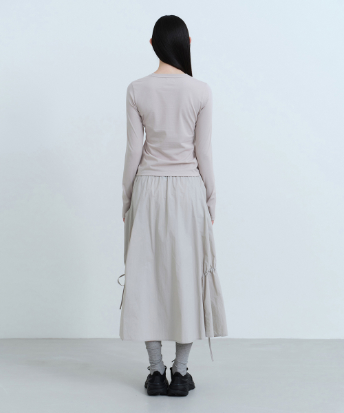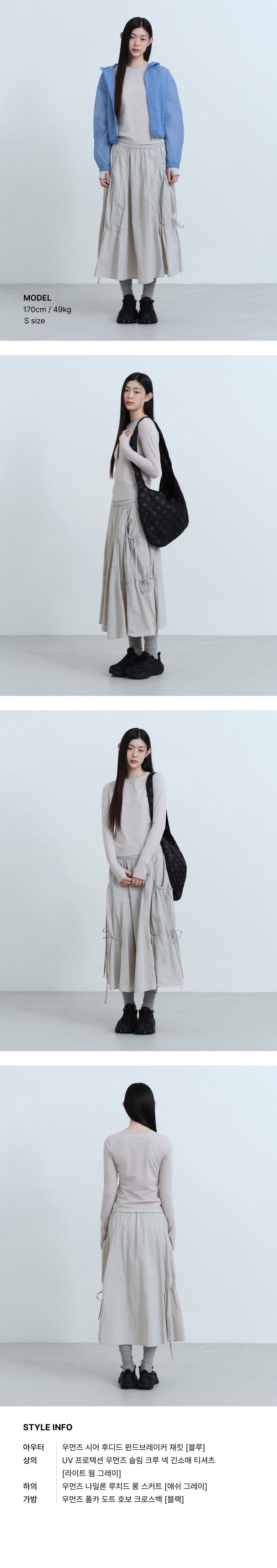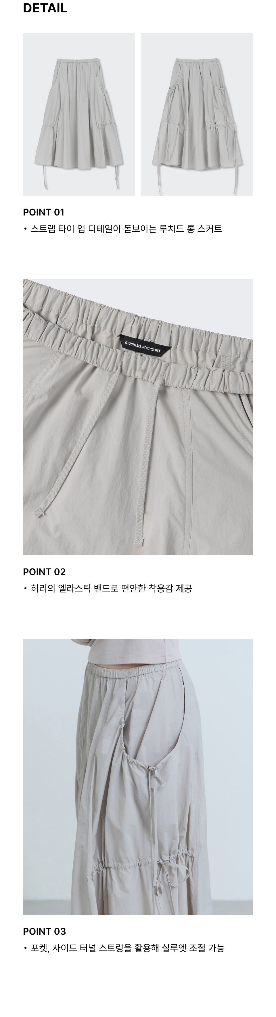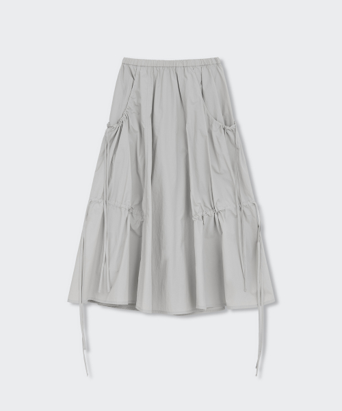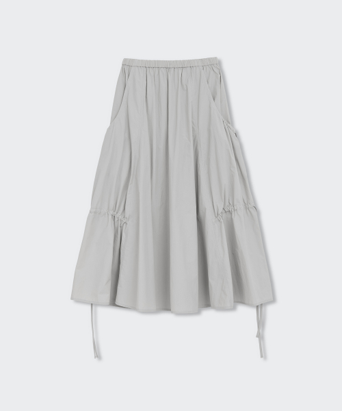 우먼즈 나일론 루치드 롱 스커트 [애쉬 그레이]