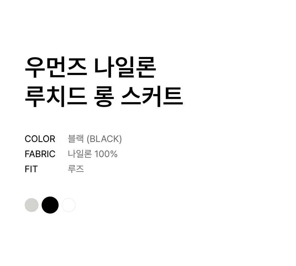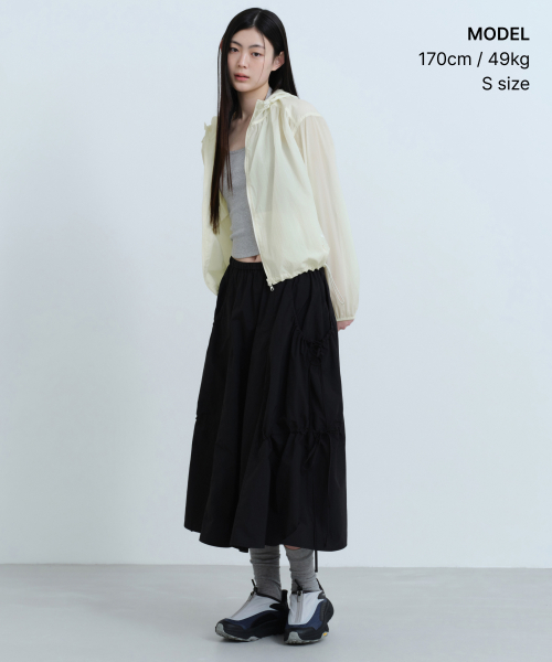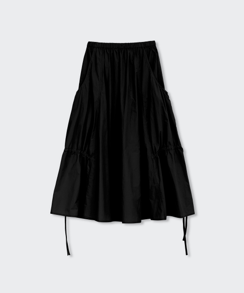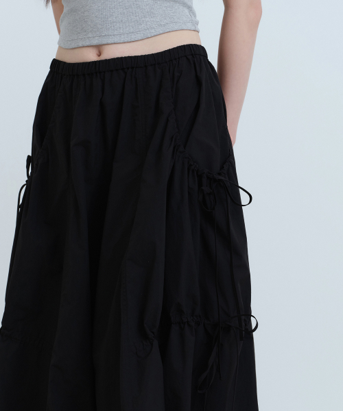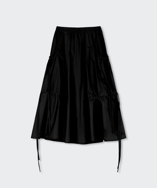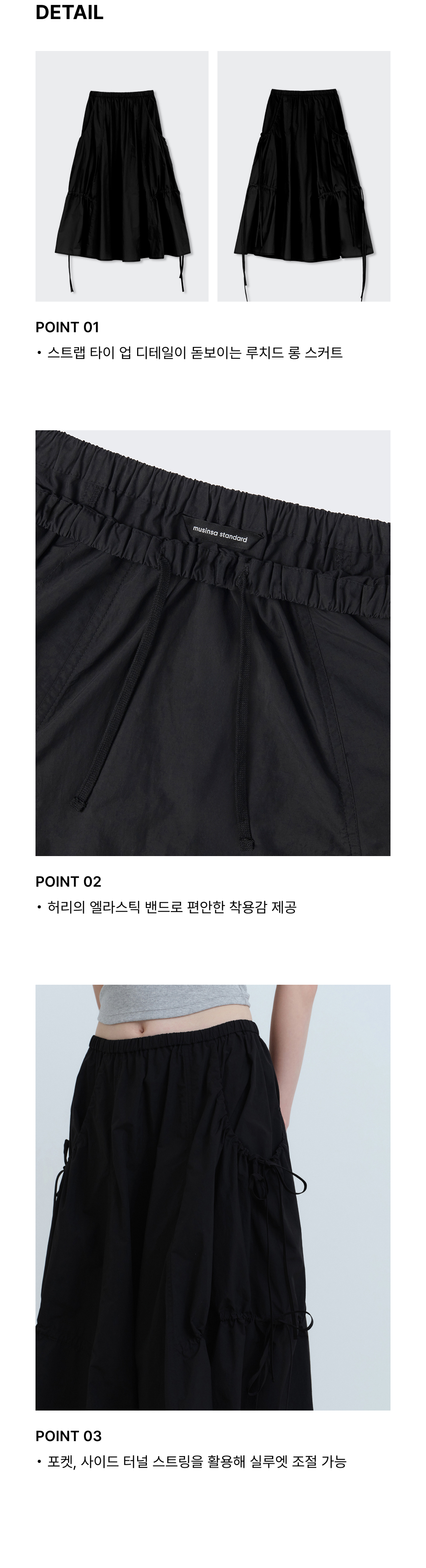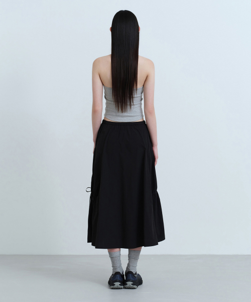 우먼즈 나일론 루치드 롱 스커트 [블랙]