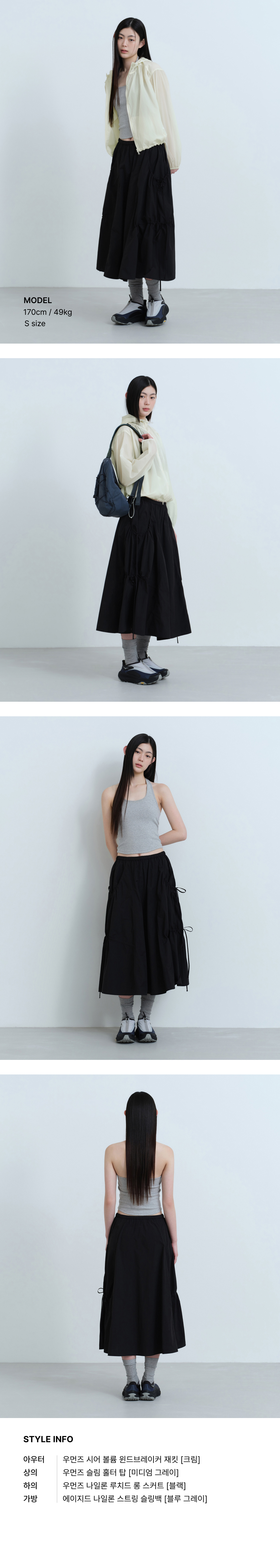 우먼즈 나일론 루치드 롱 스커트 [애쉬 그레이]
