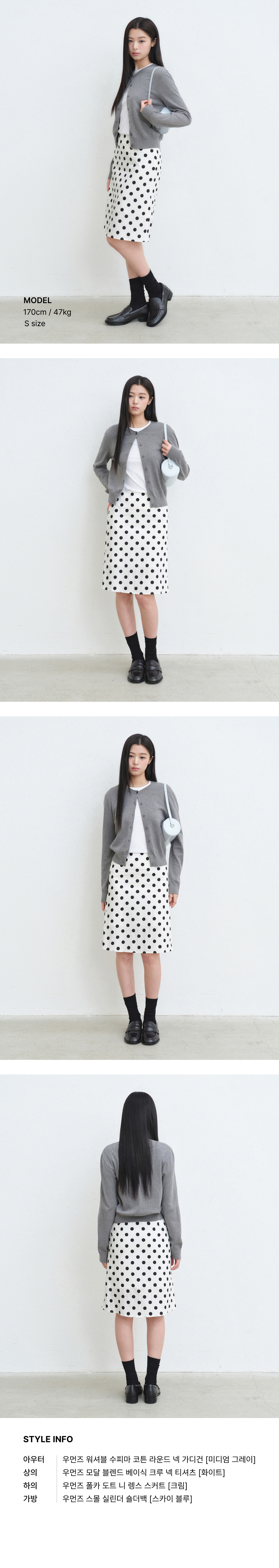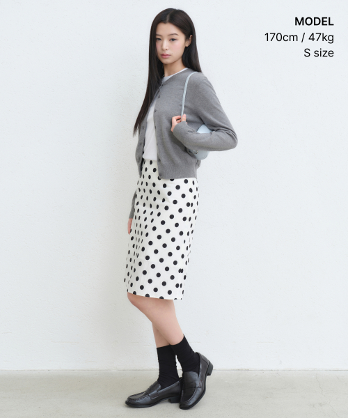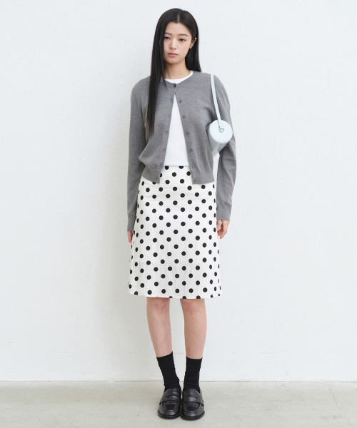 우먼즈 폴카 도트 니 렝스 스커트 [크림]