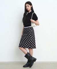 우먼즈 폴카 도트 니 렝스 스커트 [블랙]