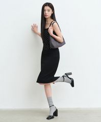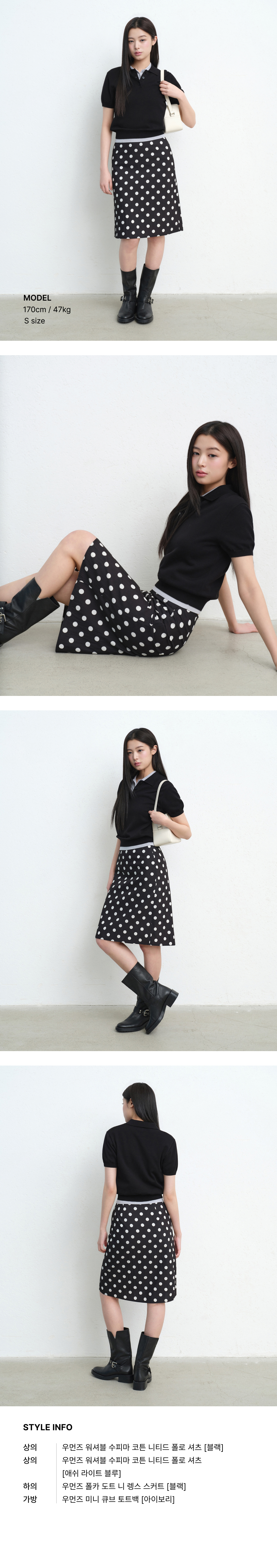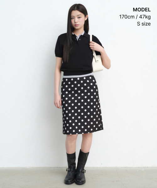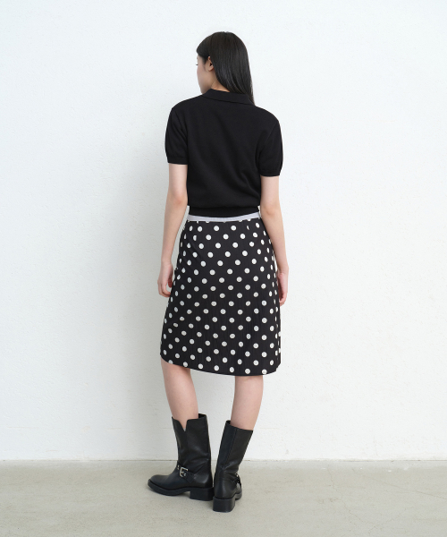우먼즈 폴카 도트 니 렝스 스커트 [블랙]