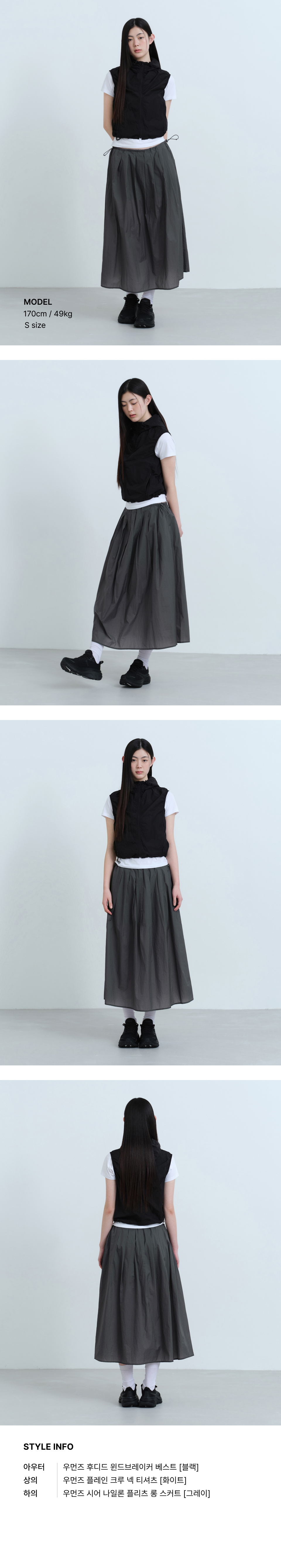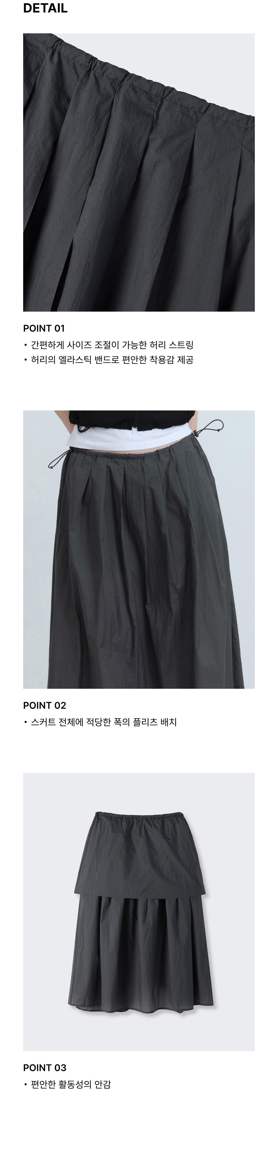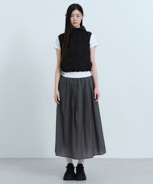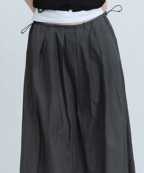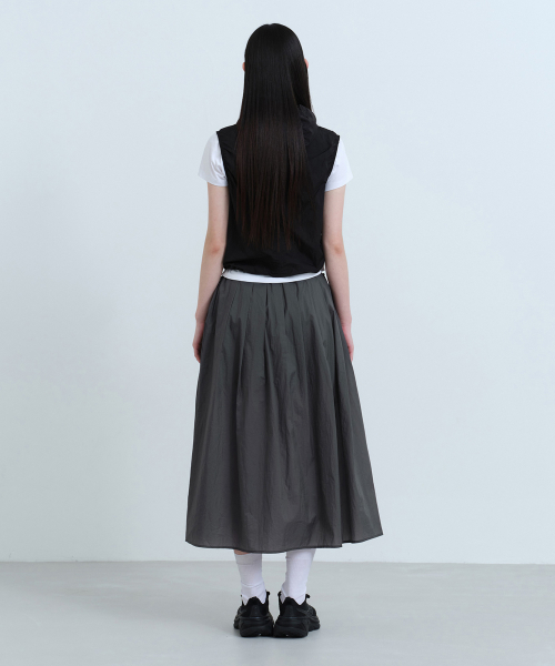 우먼즈 시어 나일론 플리츠 롱 스커트 [그레이]