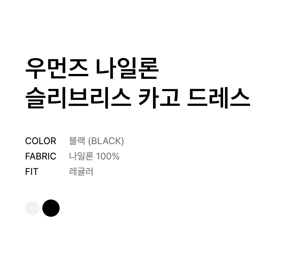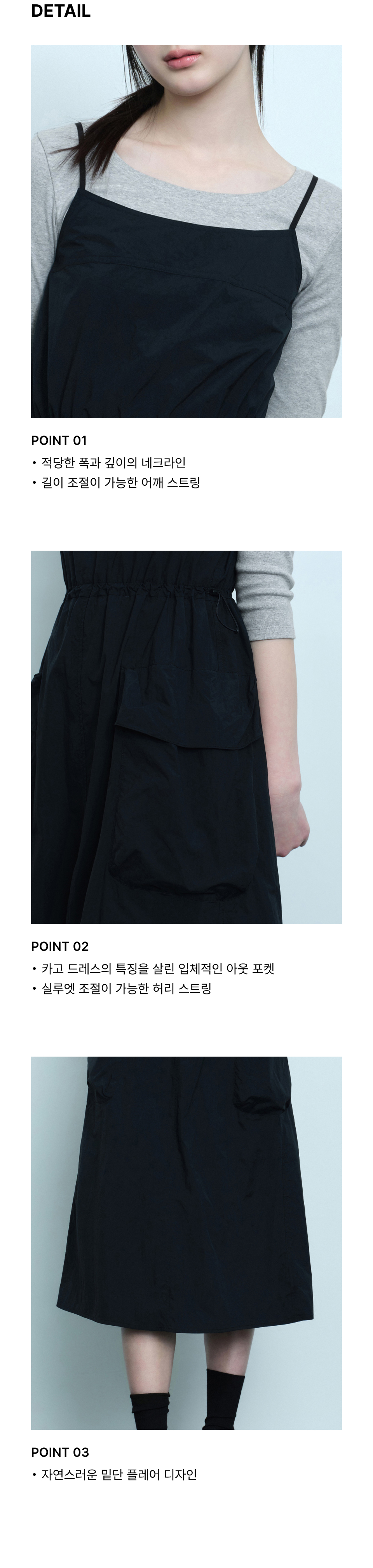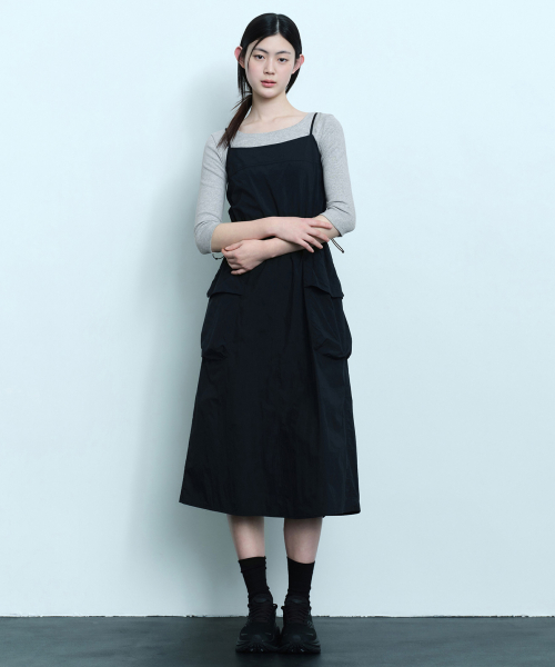 우먼즈 나일론 슬리브리스 카고 드레스 [블랙]
