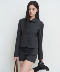 우먼즈 라운드 칼라 숏 블레이저 [그레이]