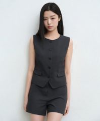 우먼즈 라운드 넥 테일러드 베스트 [그레이]