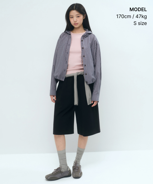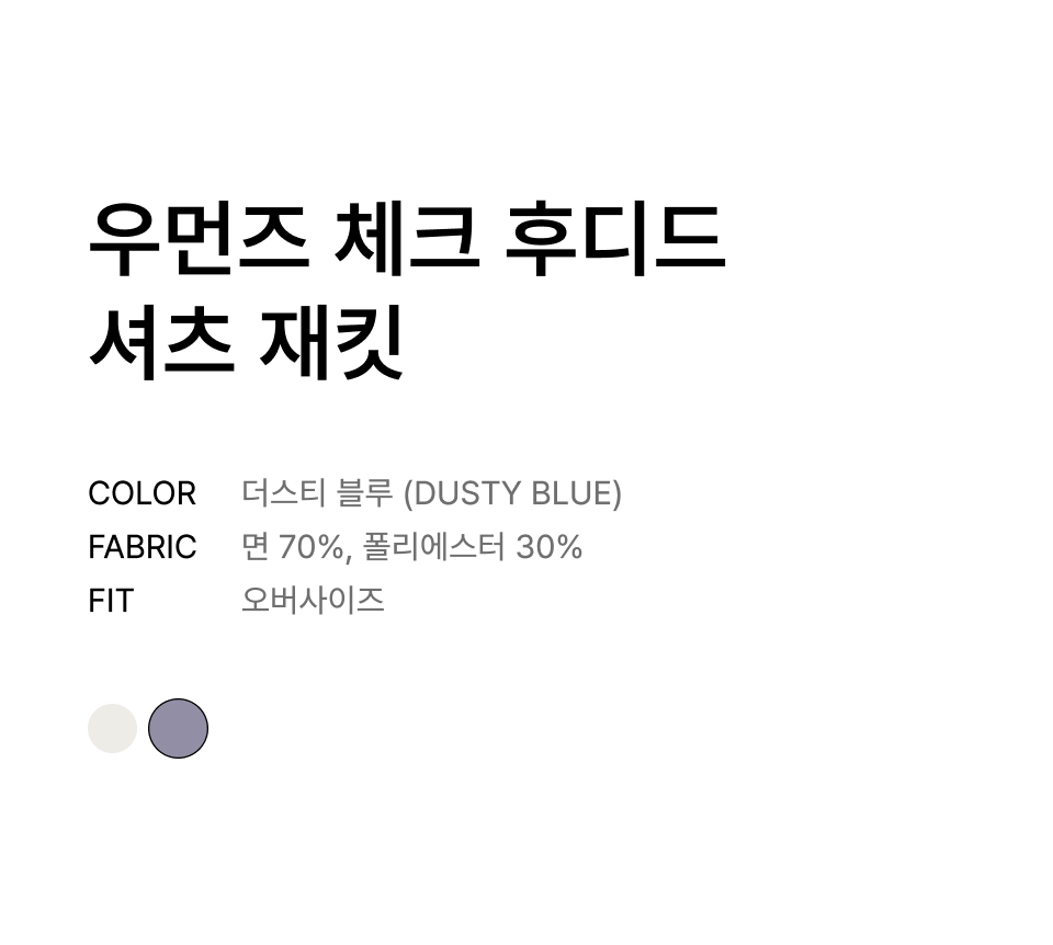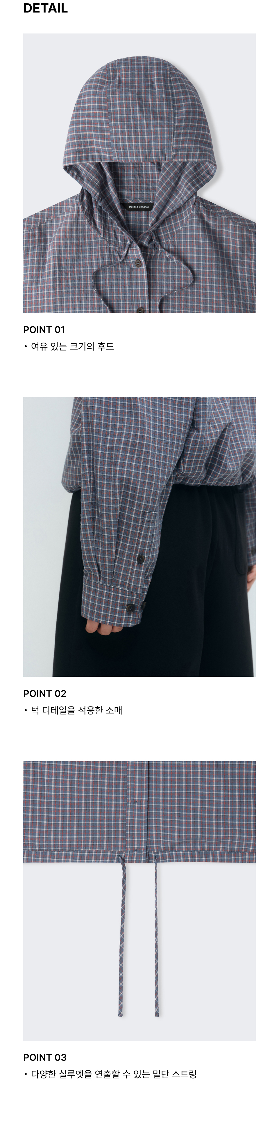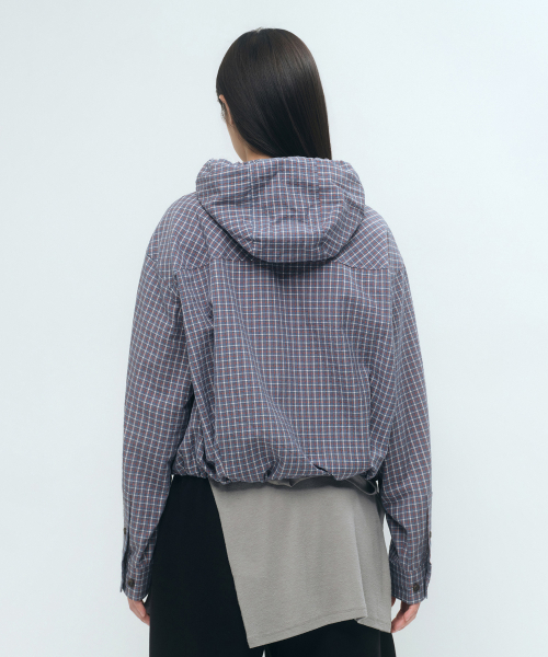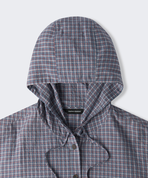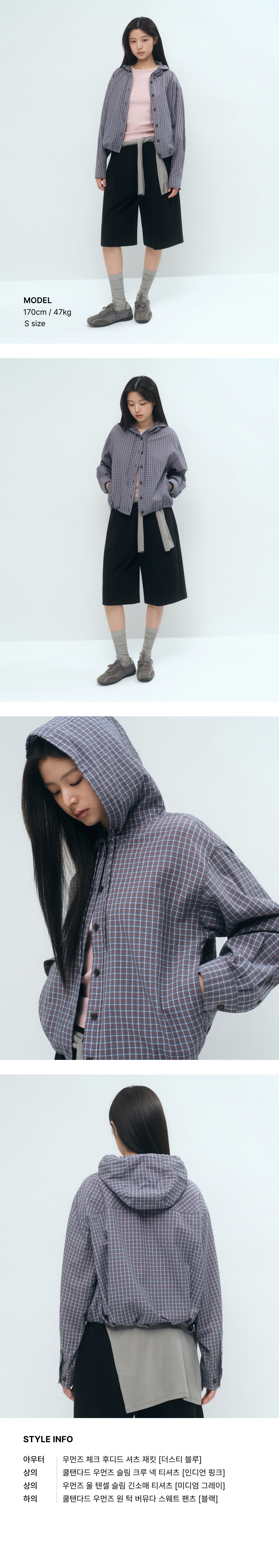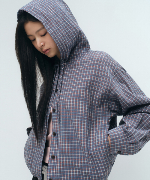 우먼즈 체크 후디드 셔츠 재킷 [더스티 블루]