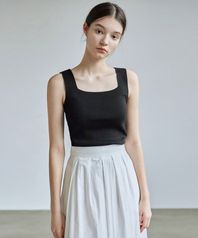 [ESSENTIAL] SQUARE NECK KNIT SLEEVELESS_BLACK