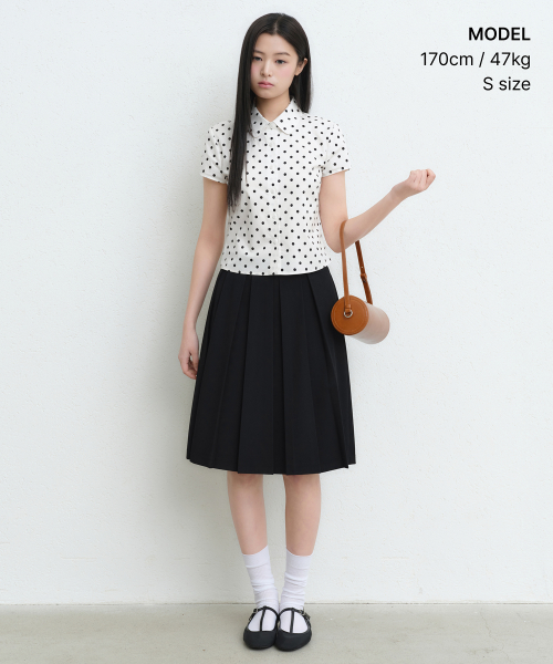 우먼즈 볼드 플리츠 니 렝스 스커트 [블랙]