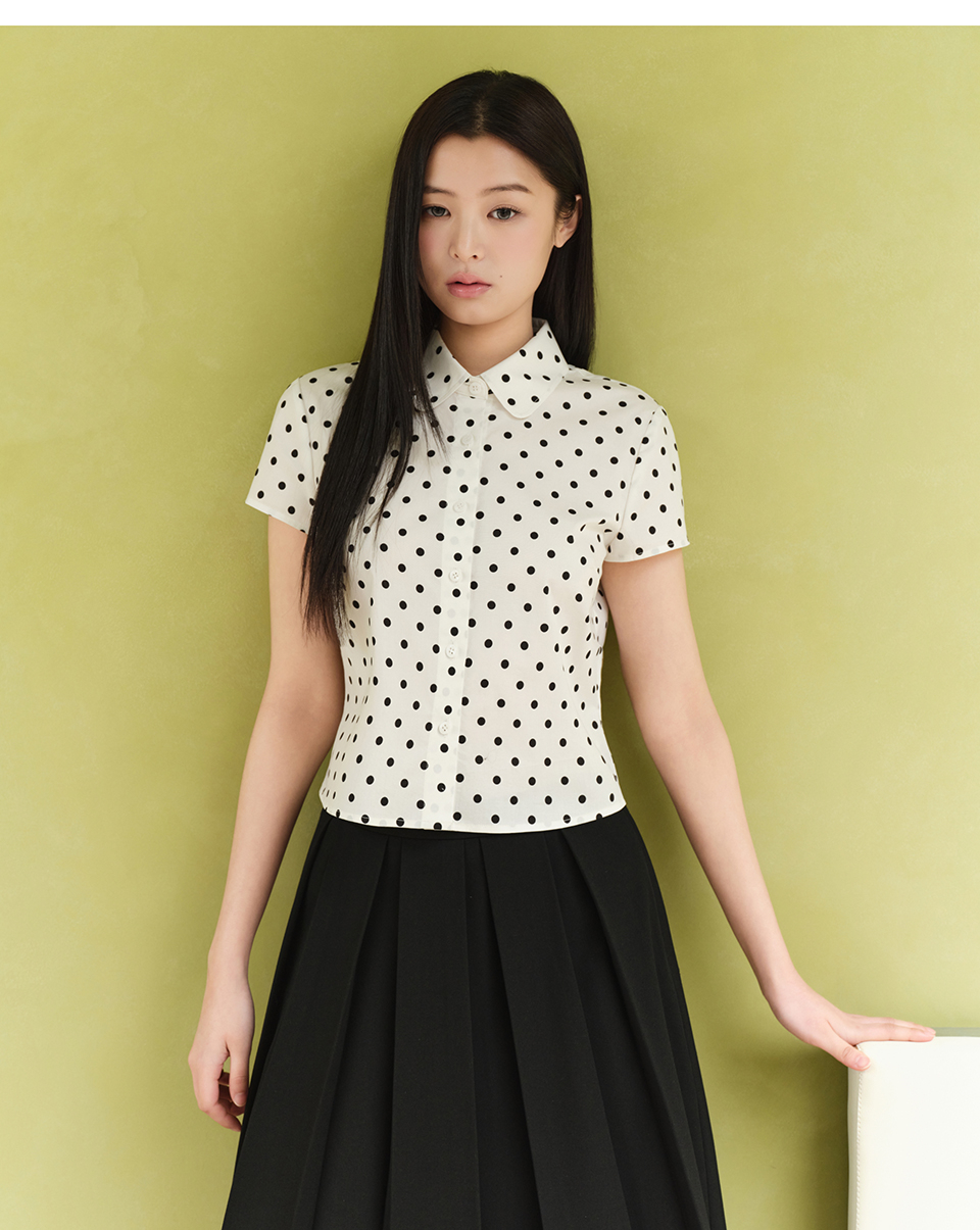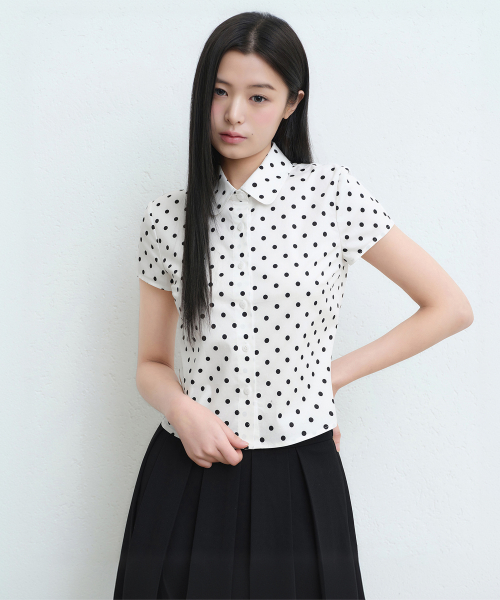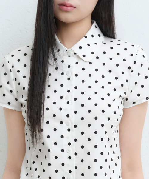 우먼즈 폴카 도트 캡 슬리브 셔츠 [크림]