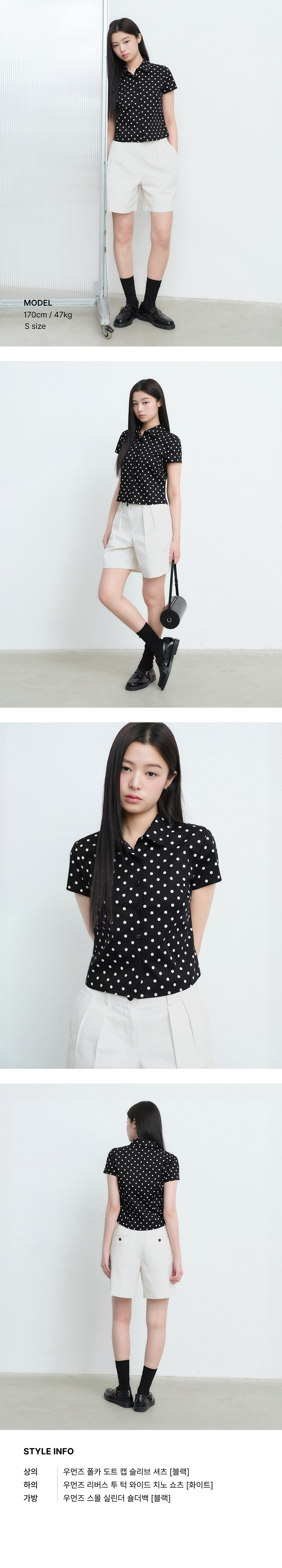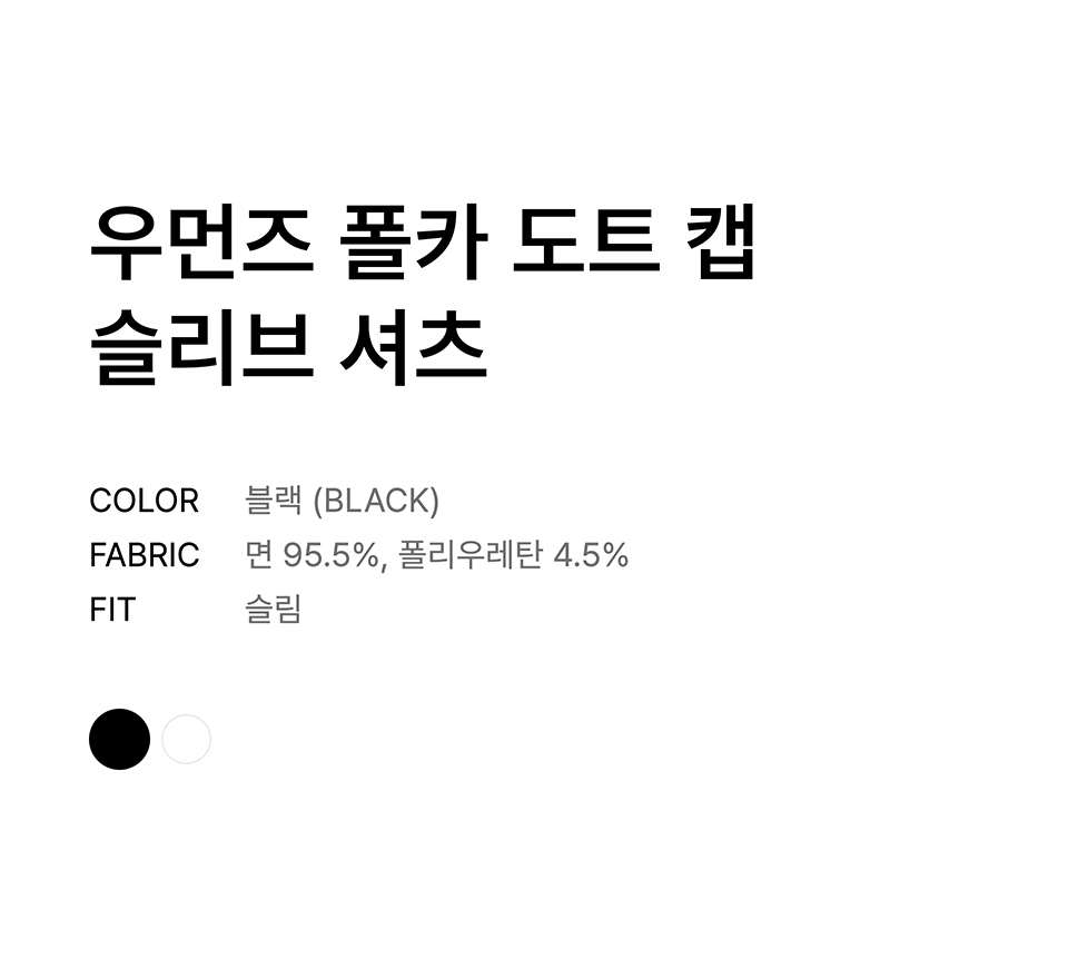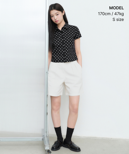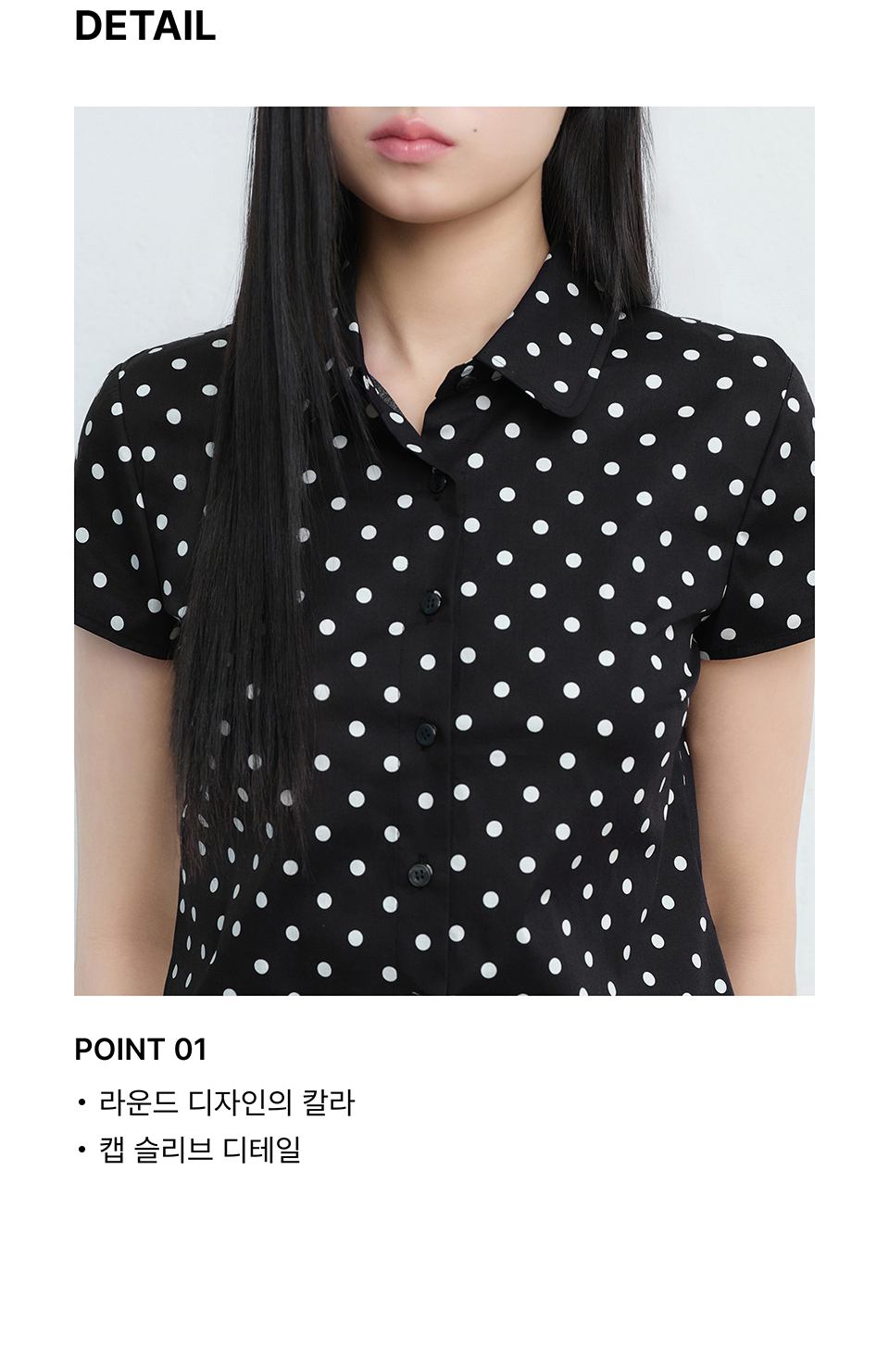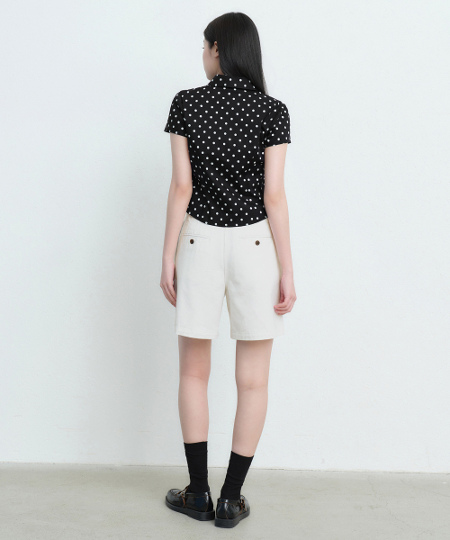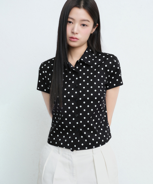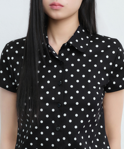 우먼즈 폴카 도트 캡 슬리브 셔츠 [블랙]