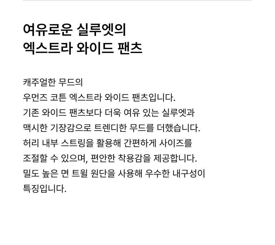 우먼즈 코튼 엑스트라 와이드 팬츠 [블랙]