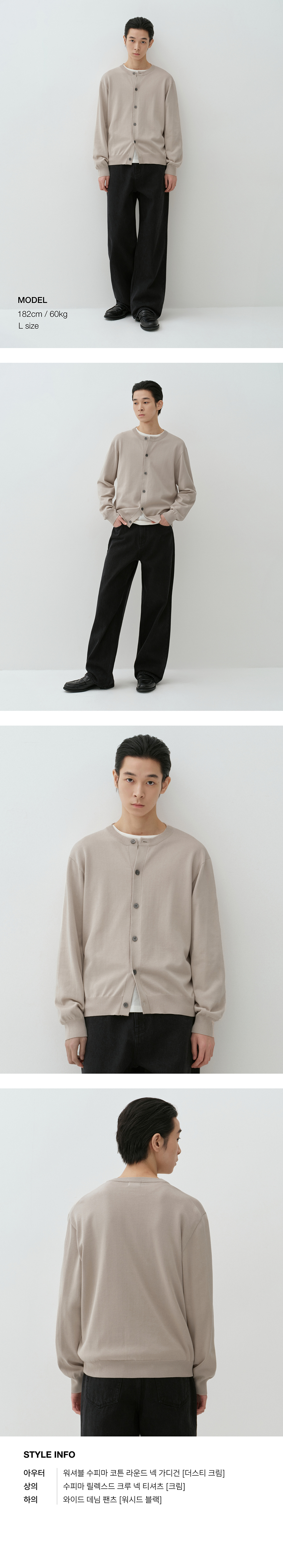 워셔블 수피마 코튼 라운드 넥 가디건 [더스티 크림]