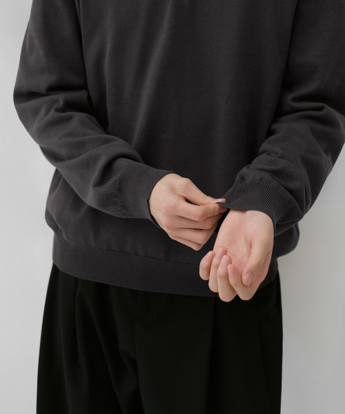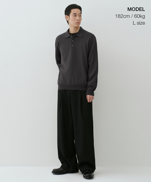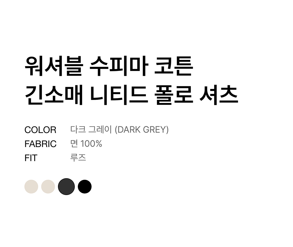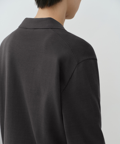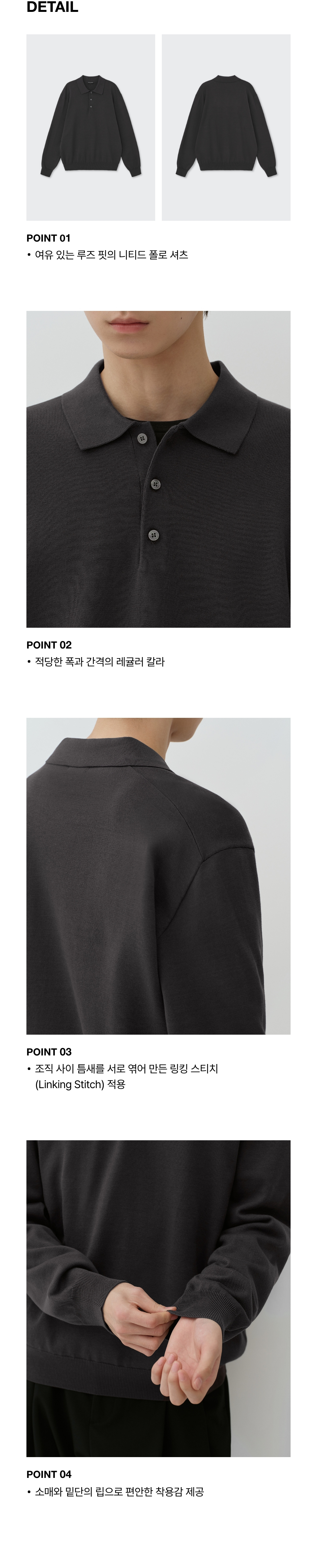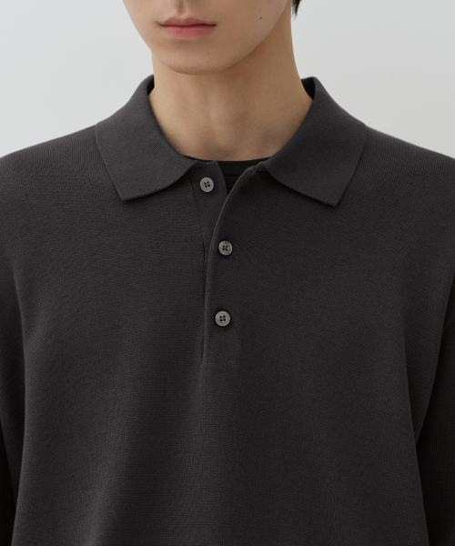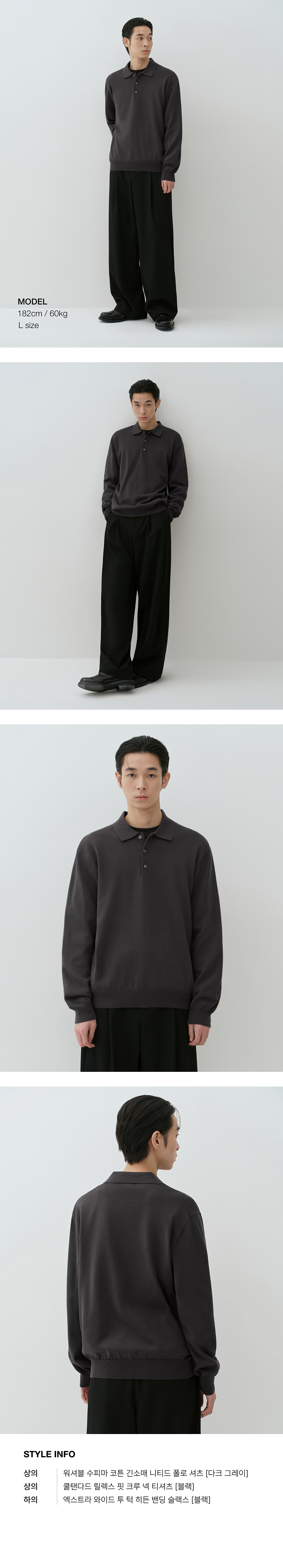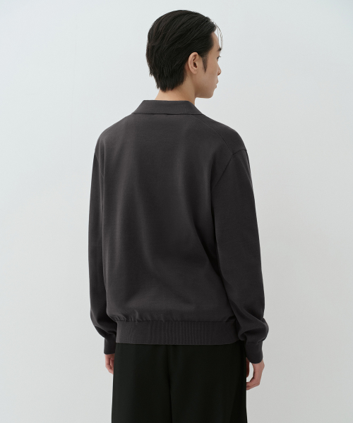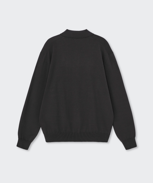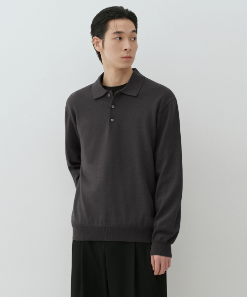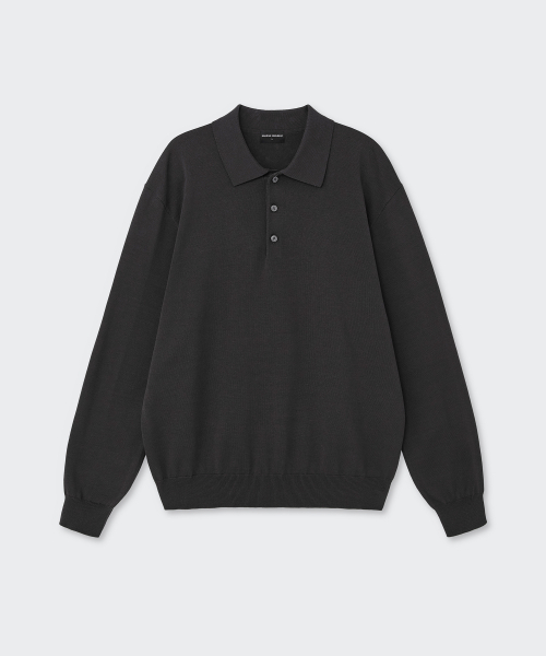 워셔블 수피마 코튼 긴소매 니티드 폴로 셔츠 [다크 그레이]
