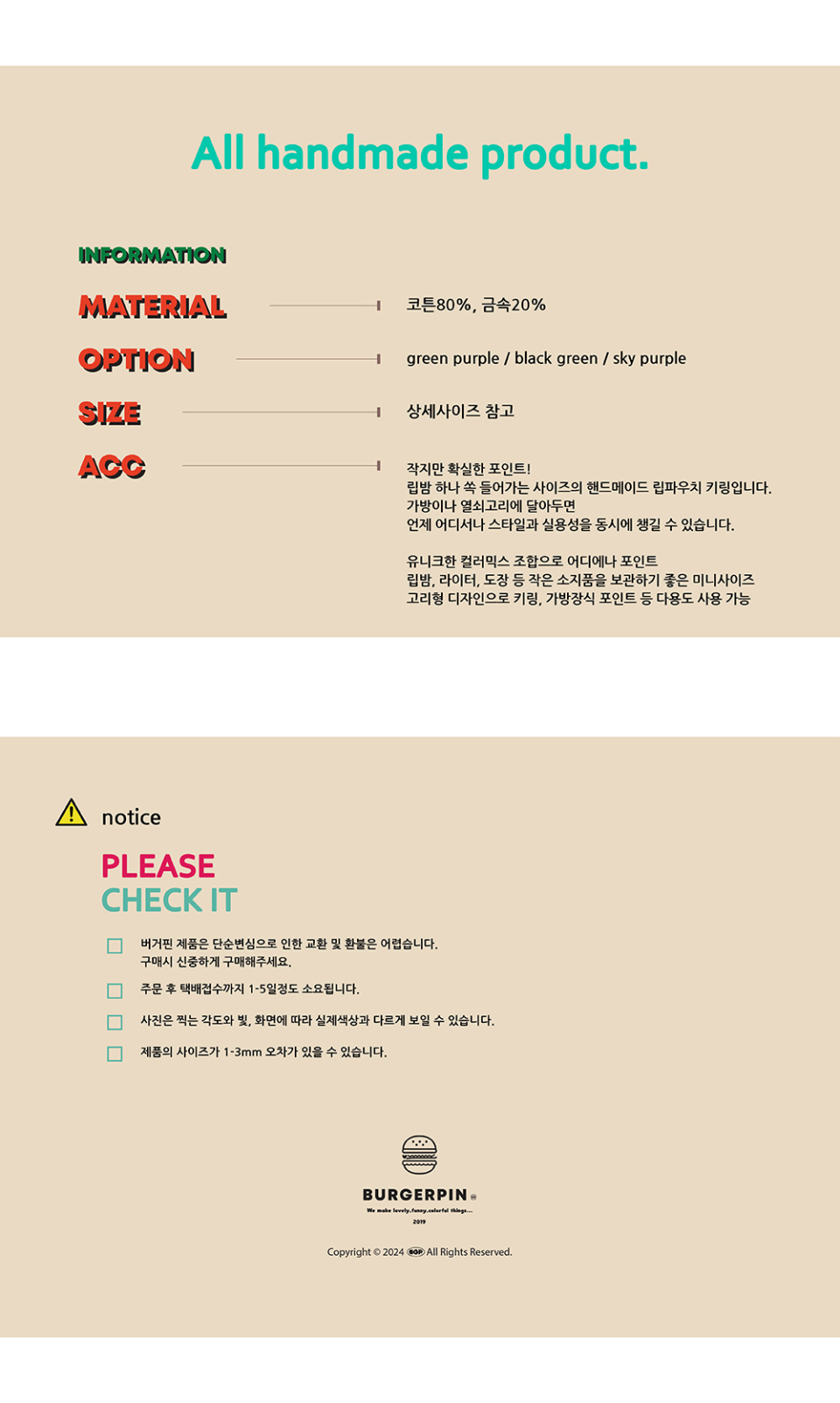 버거핀(BURGERPIN)은 러블리하고 퍼니한 일상 및 패션 소품과 디자인 아이템을 선보이는 브랜드입니다.