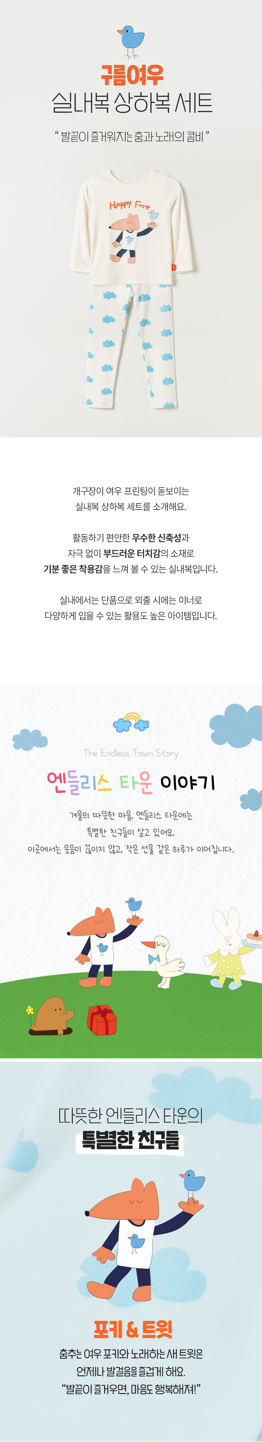 구름여우 실내복 상하복 세트
