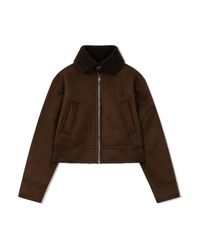 Cropped Faux Shearling Jacket (WALNUT)