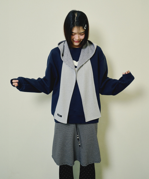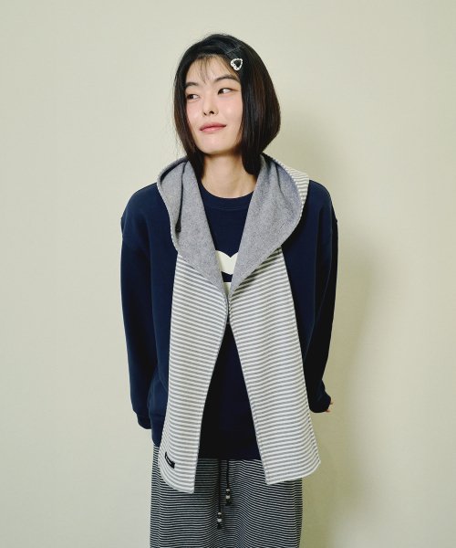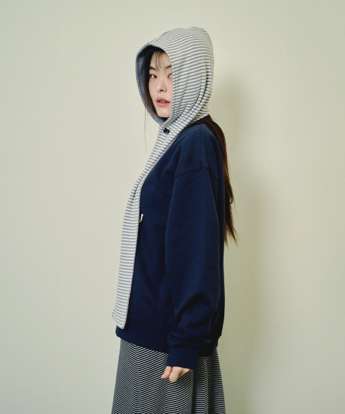 리버시블 토글 버튼 후드 머플러 퍼플 브라운