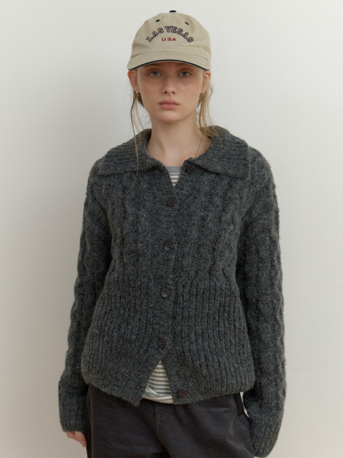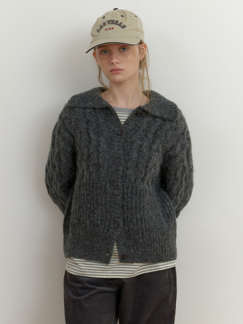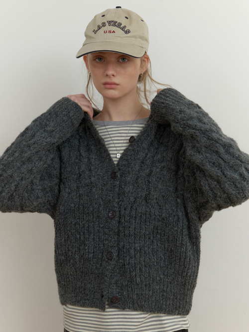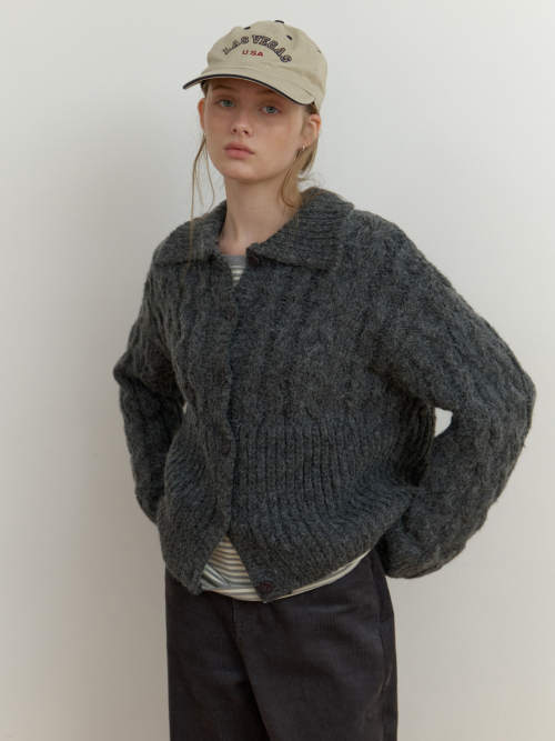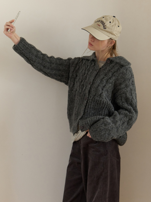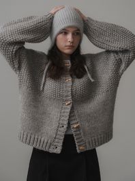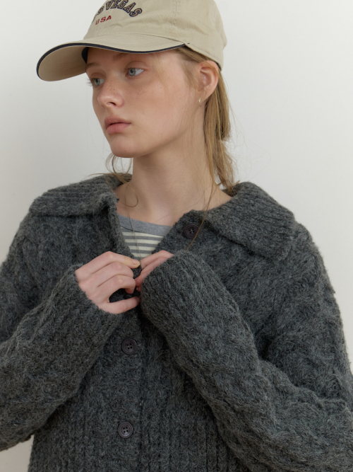 더미튼만의 부드러움을 담아 폭닥한 무드로 완성된 니트 가디건입니다. 상단부와 소매 라인은 오밀조밀하게 짜인 케이블 조직으로 따스한 입체감을 불어넣었으며, 하단부는 담백한 하찌 조직으로 다르게 구성하여 특별하게 보이는 편직 밸런스를 은은하게 녹여내었습니다. 소매 단과 밑단 립 편직으로 탄탄하고 안정감 있게 잡아주었으며, 카라 또한 립 편직으로 작업되어 적당히 무게감 있는 쉐입으로 완성해 전체적인 조화를 부드러이 맞춰주었습니다. 편안함을 지닌 루즈한 실루엣과 조직감에 집중할 수 있도록 원사 색상에 맞추어 염색된 단추는 제품에 조금 더 소소하고 자연스레 스며듭니다.