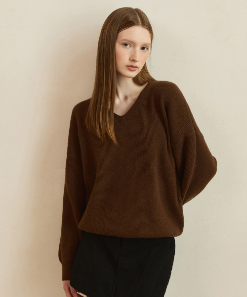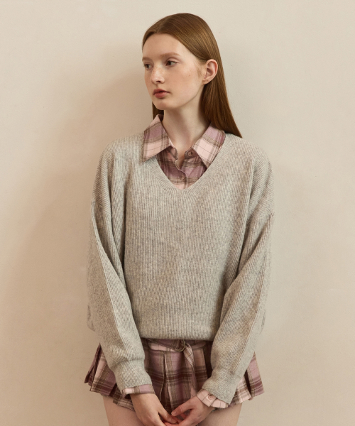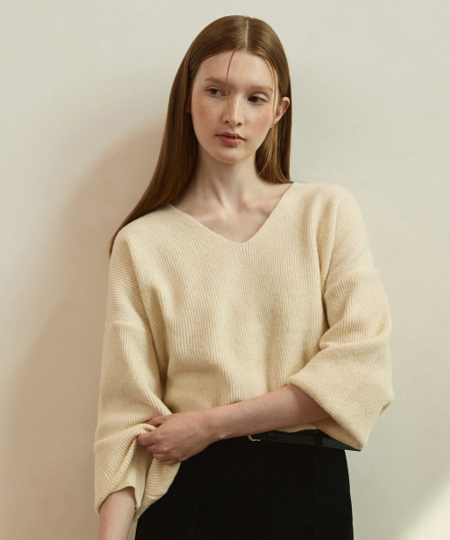 Double rib v-neck wool blended knit_4color