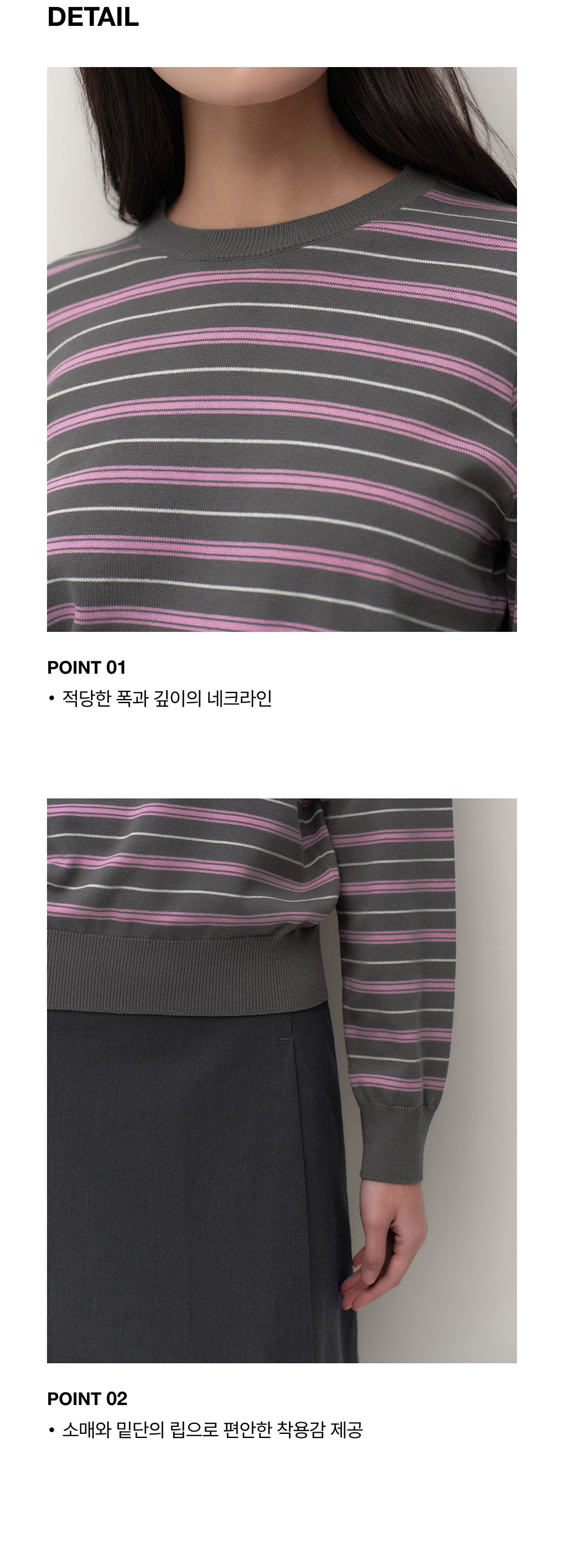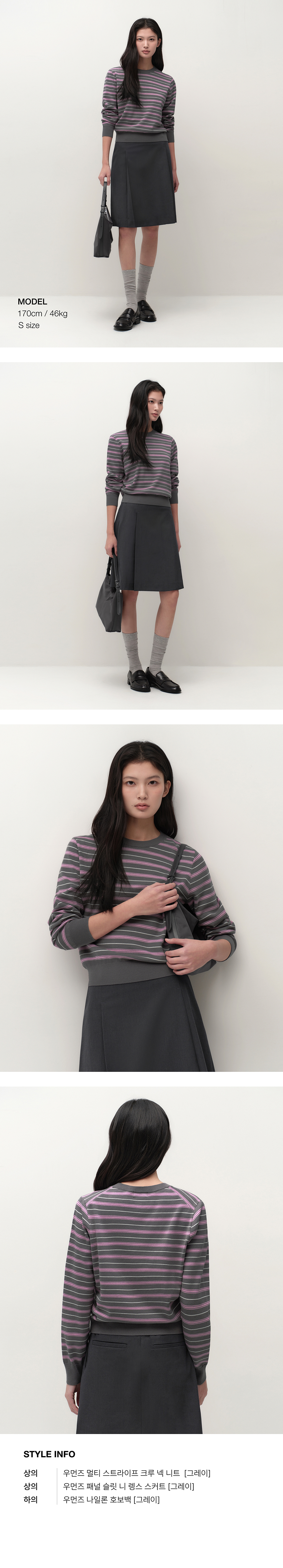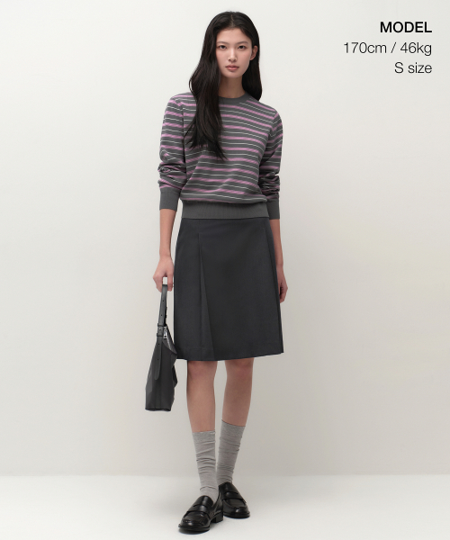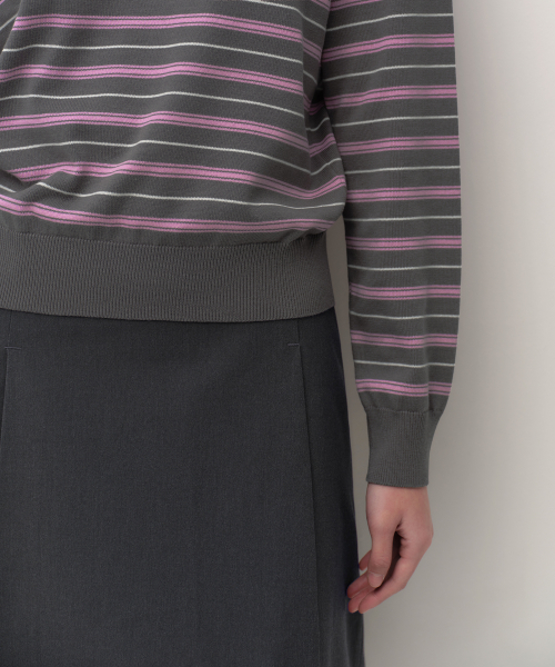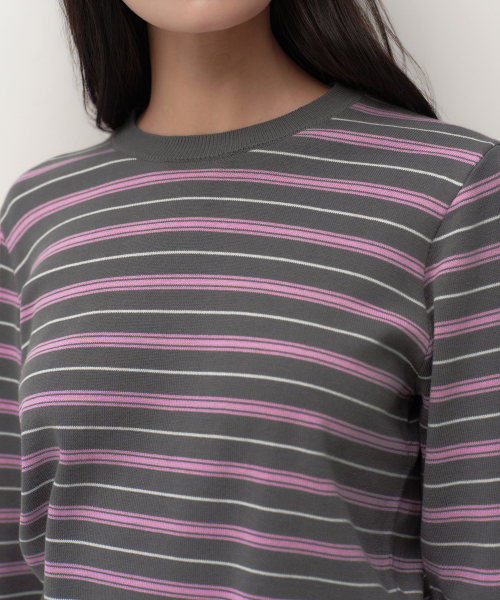 우먼즈 멀티 스트라이프 크루 넥 니트 [그레이]