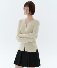 우먼즈 리브드 슬림 가디건 [라이트 베이지]