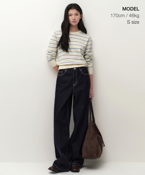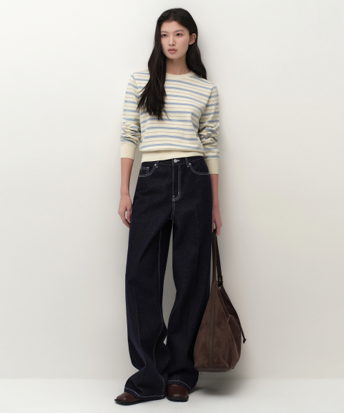 우먼즈 멀티 스트라이프 크루 넥 니트 [네이비]