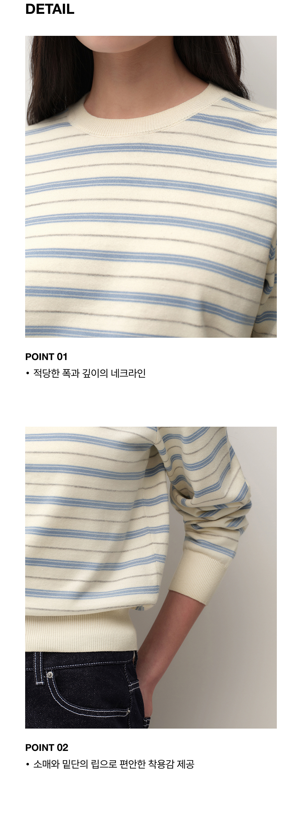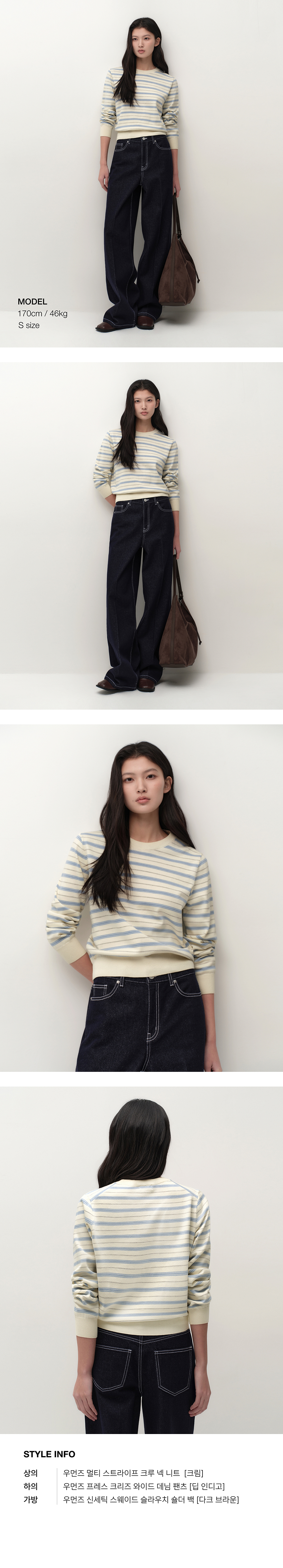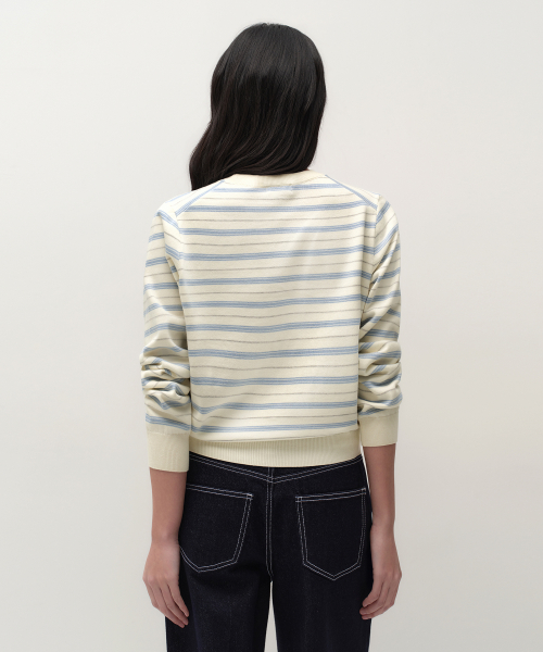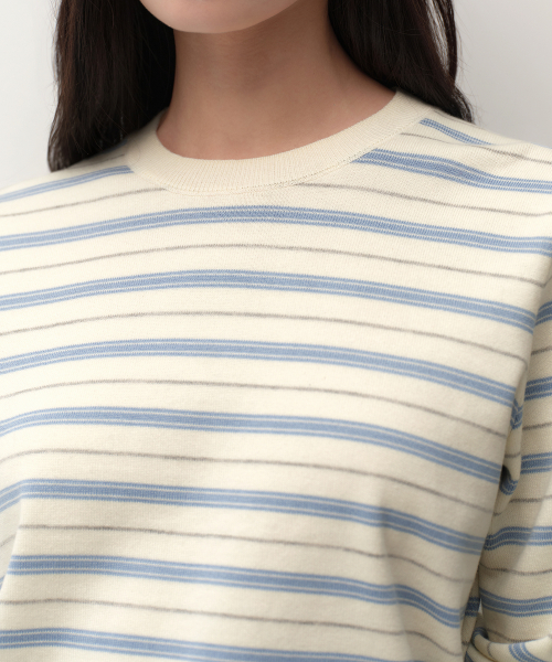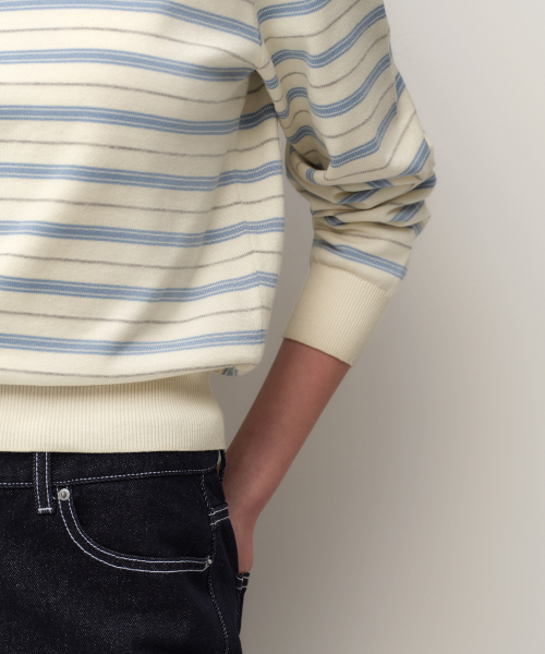 우먼즈 멀티 스트라이프 크루 넥 니트 [크림]