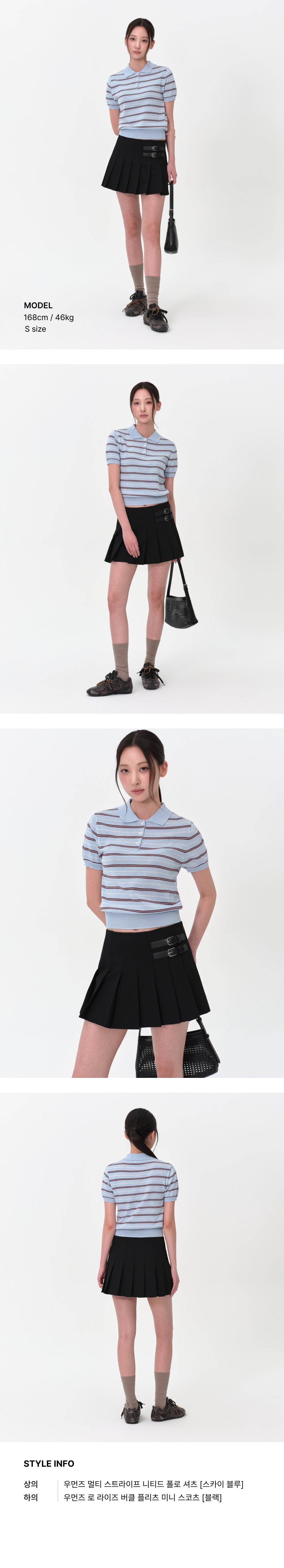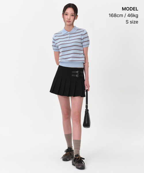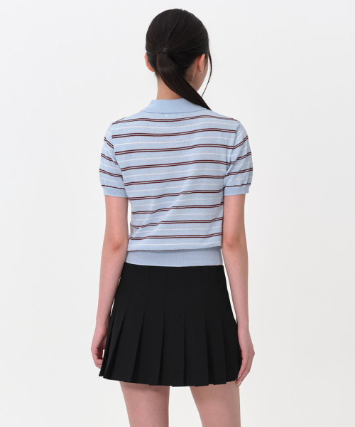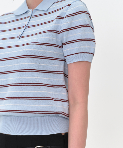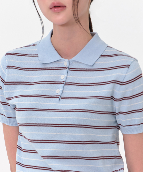우먼즈 멀티 스트라이프 니티드 폴로 셔츠 [스카이 블루]